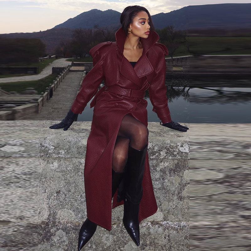 Autumn And Winter Women's Clothing New Leather Coat Elegant Long Leather Coat