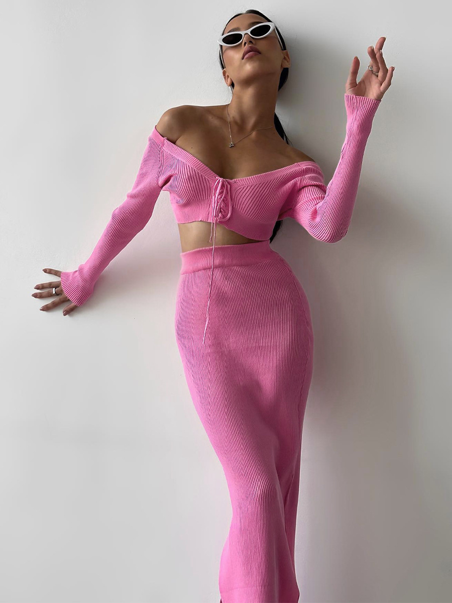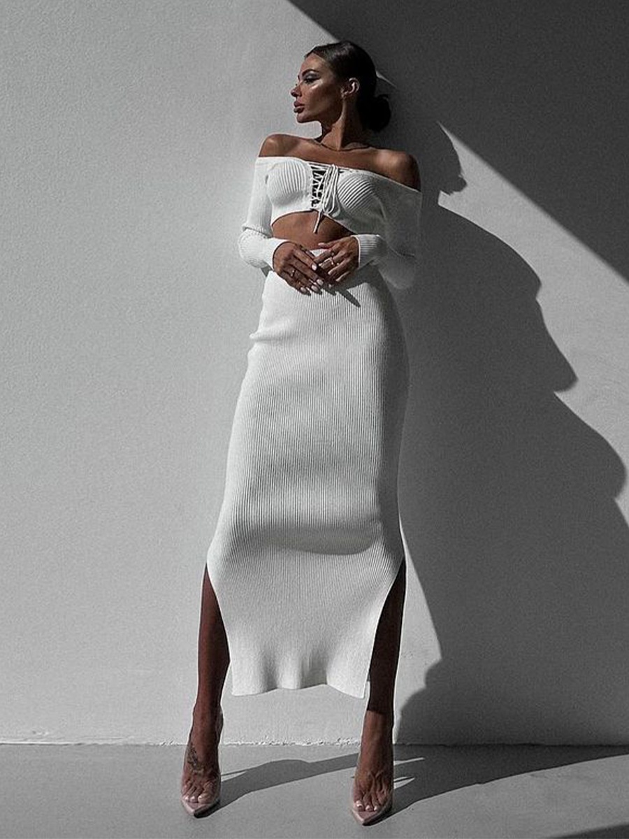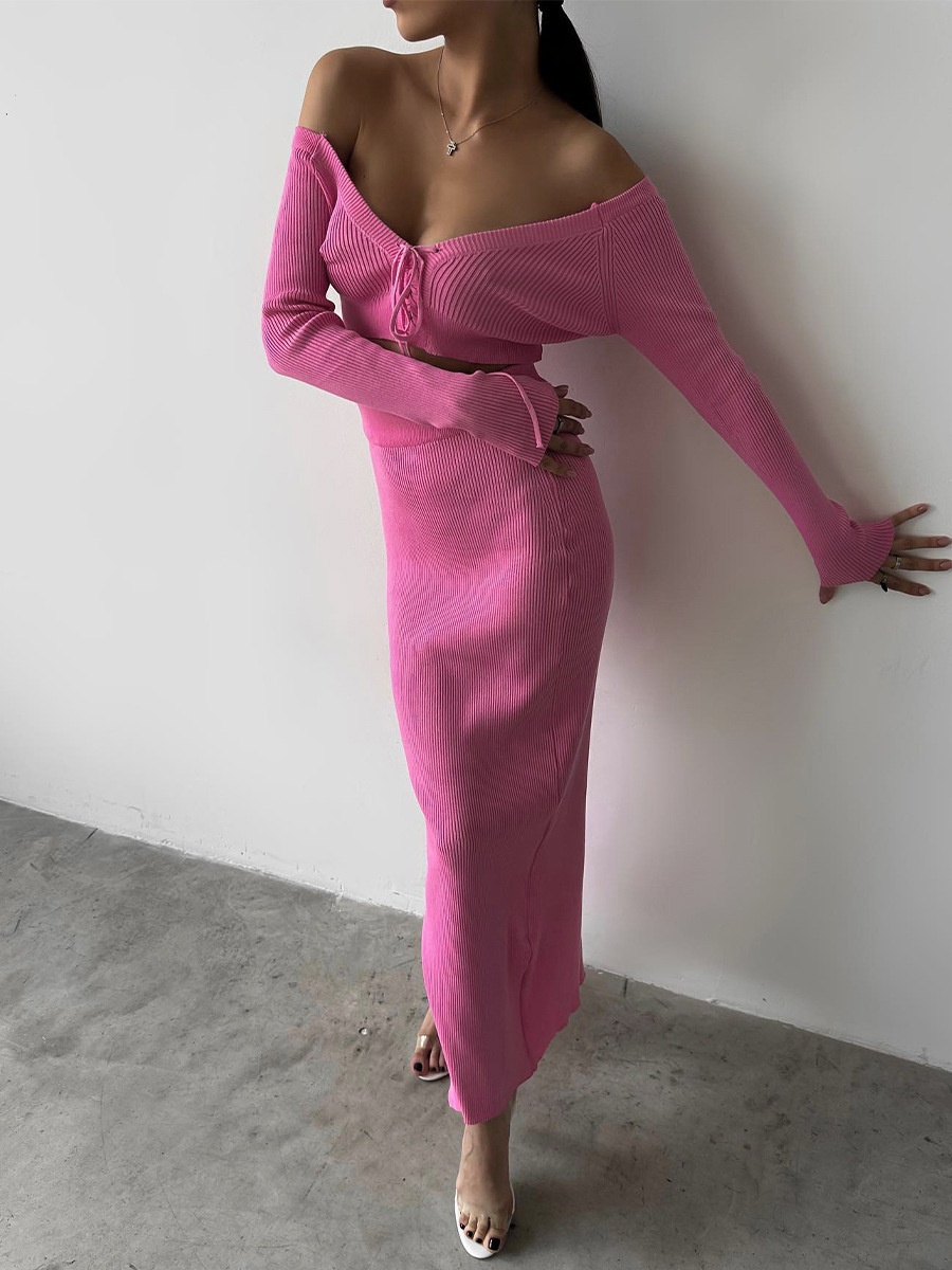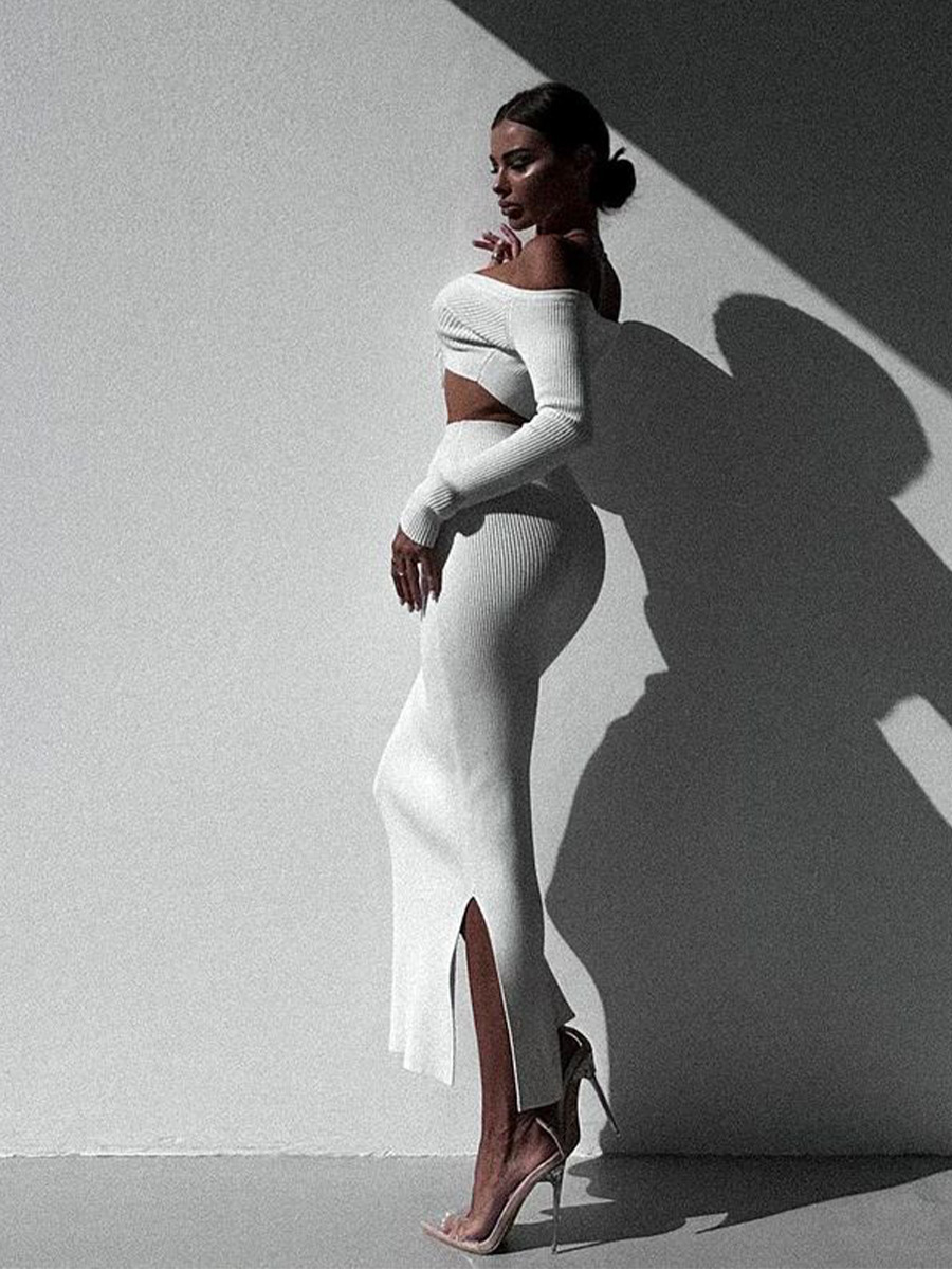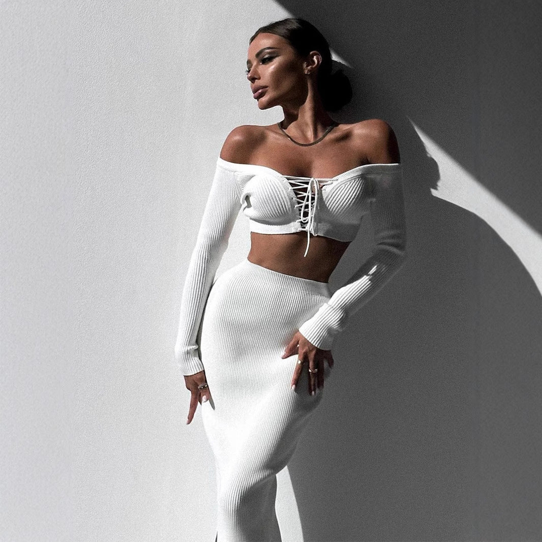 Autumn Winter Sexy Long Sleeve Sweater Dress Two-piece Set Skinny Knit
