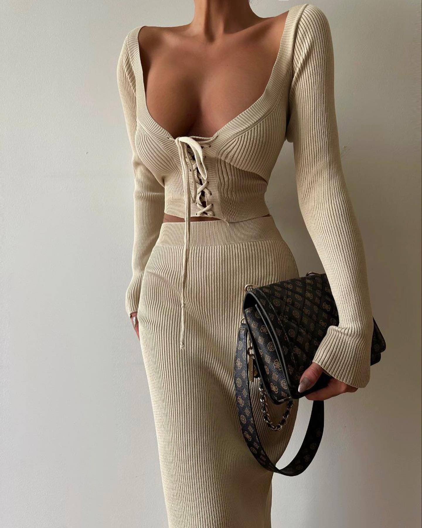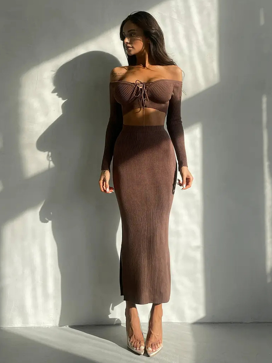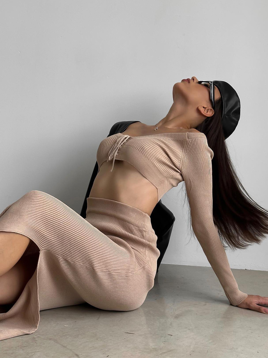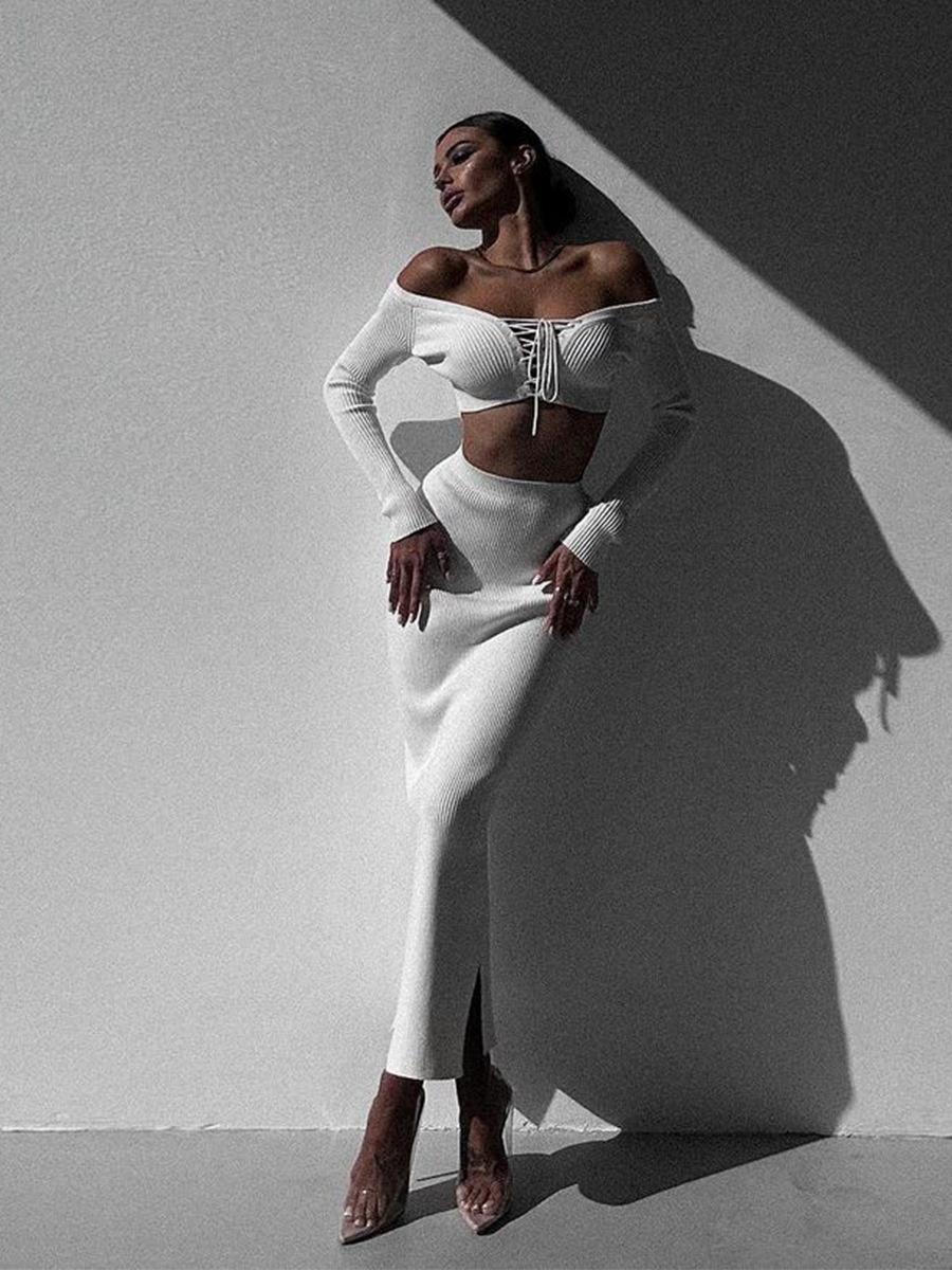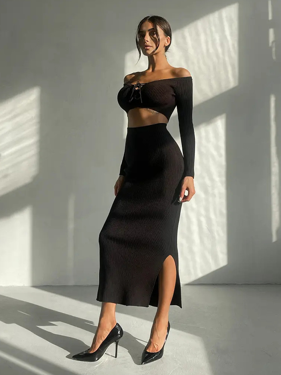 Autumn Winter Sexy Long Sleeve Sweater Dress Two-piece Set Skinny Knit