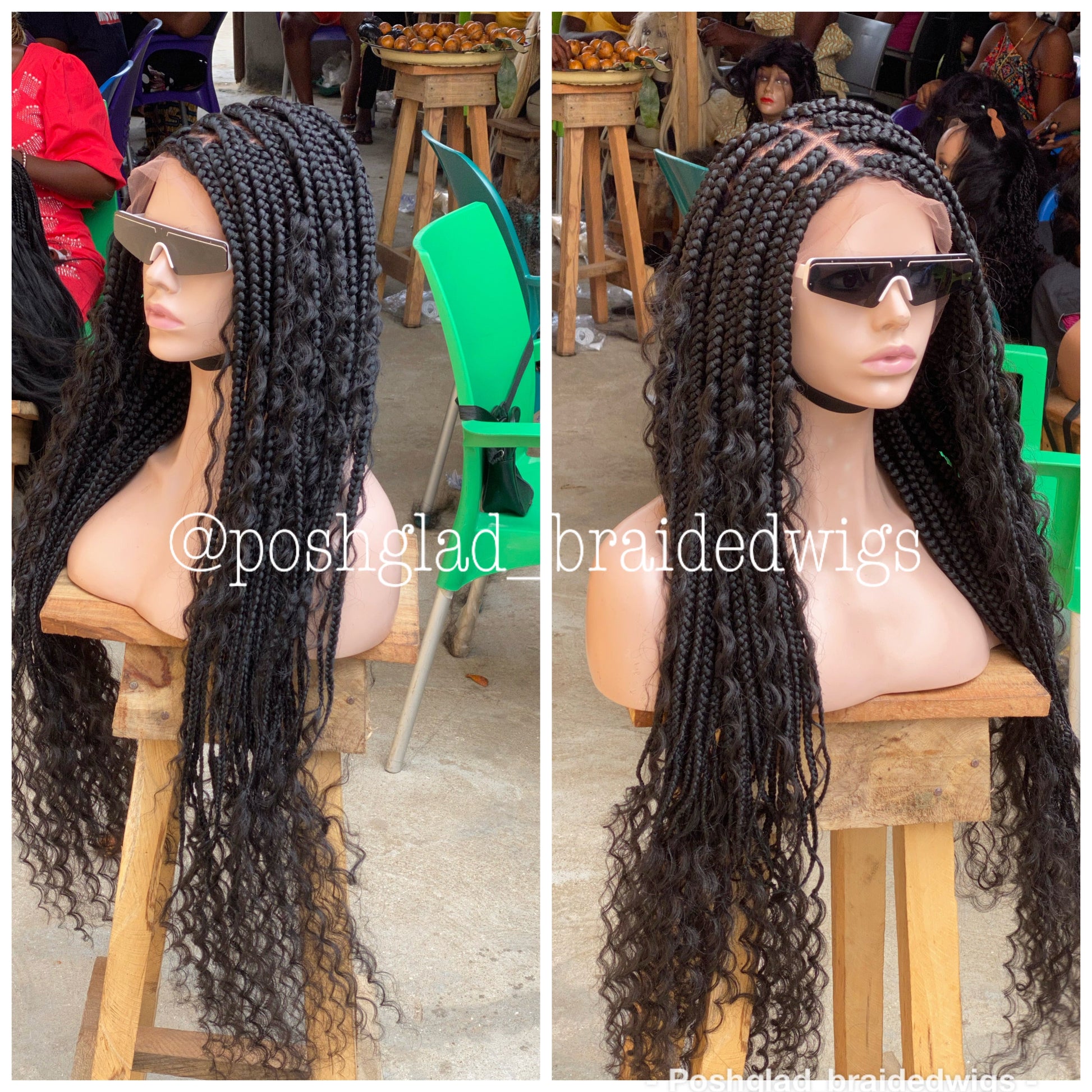 Bohemian Box Braid Wig, Swiss Full Lace, Color 1B, Waist Length - Bailey