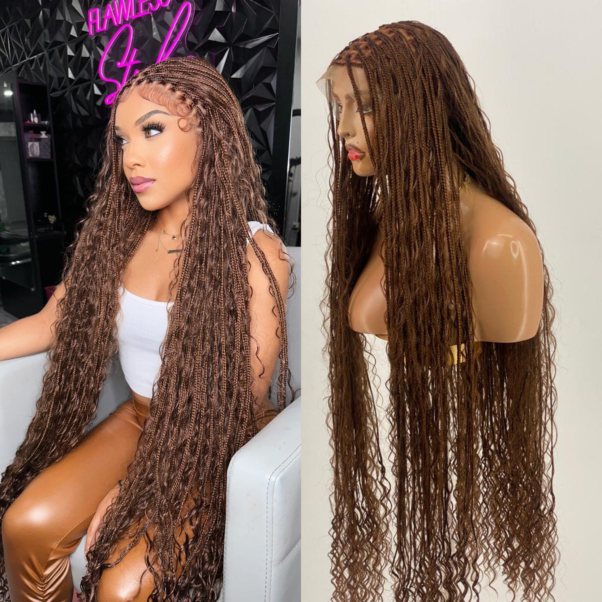 - Braids Type: Bohemian knotless Braid / 100% Hand tied-braided wigs.