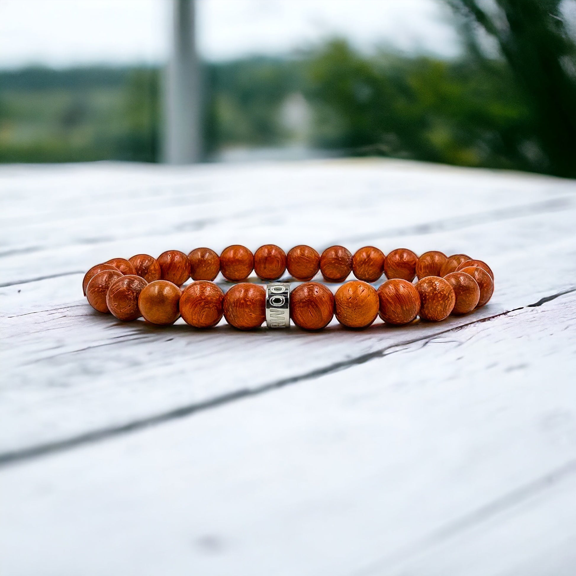 Inspired by smoldering campfires and windswept cliffs, Stonefire Ridge uses bright red sandalwood beads with a smoky, natural polish. This rugged bracelet for men blends earth and flame — perfect for the man who thrives where the trail ends.
