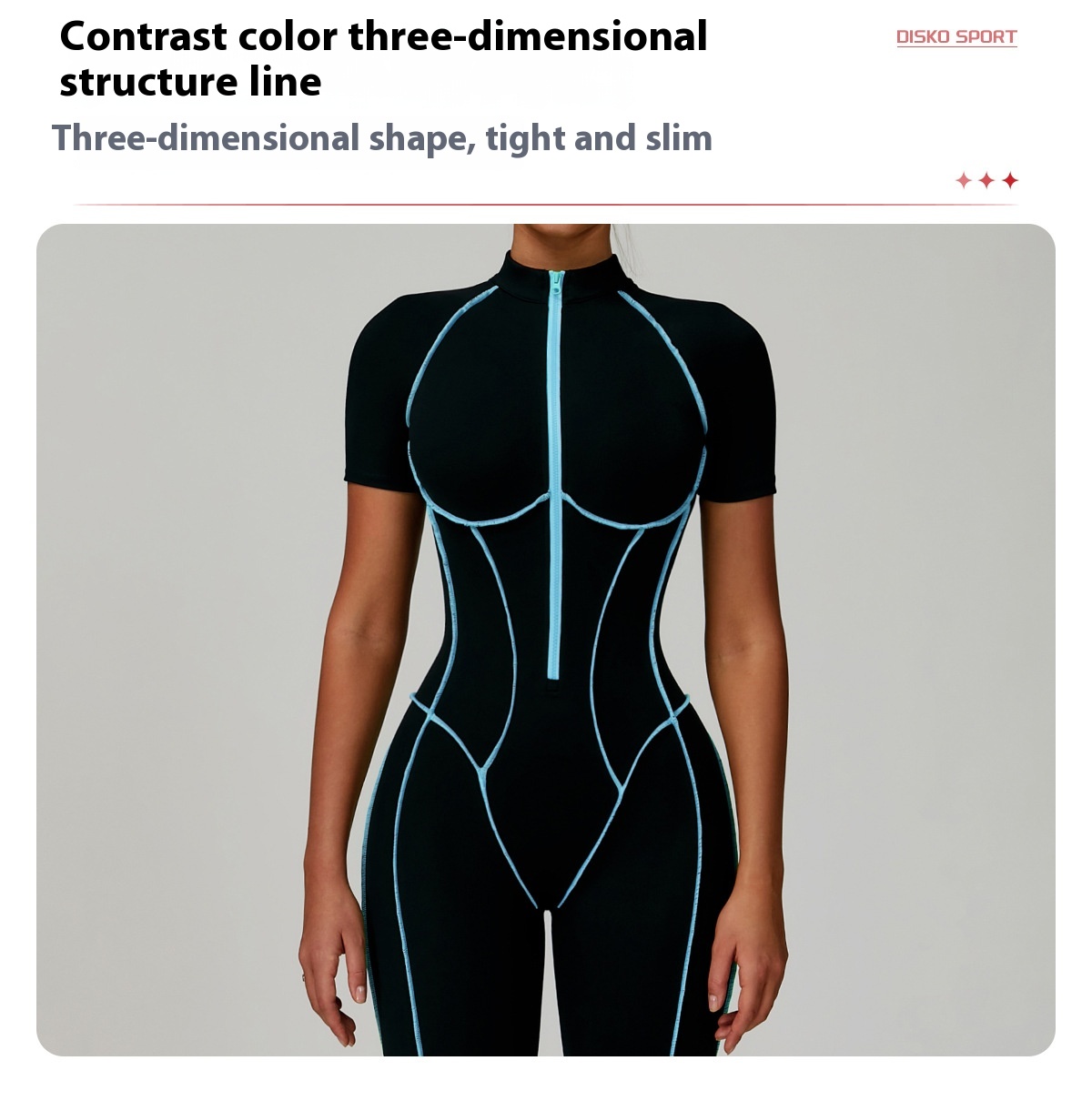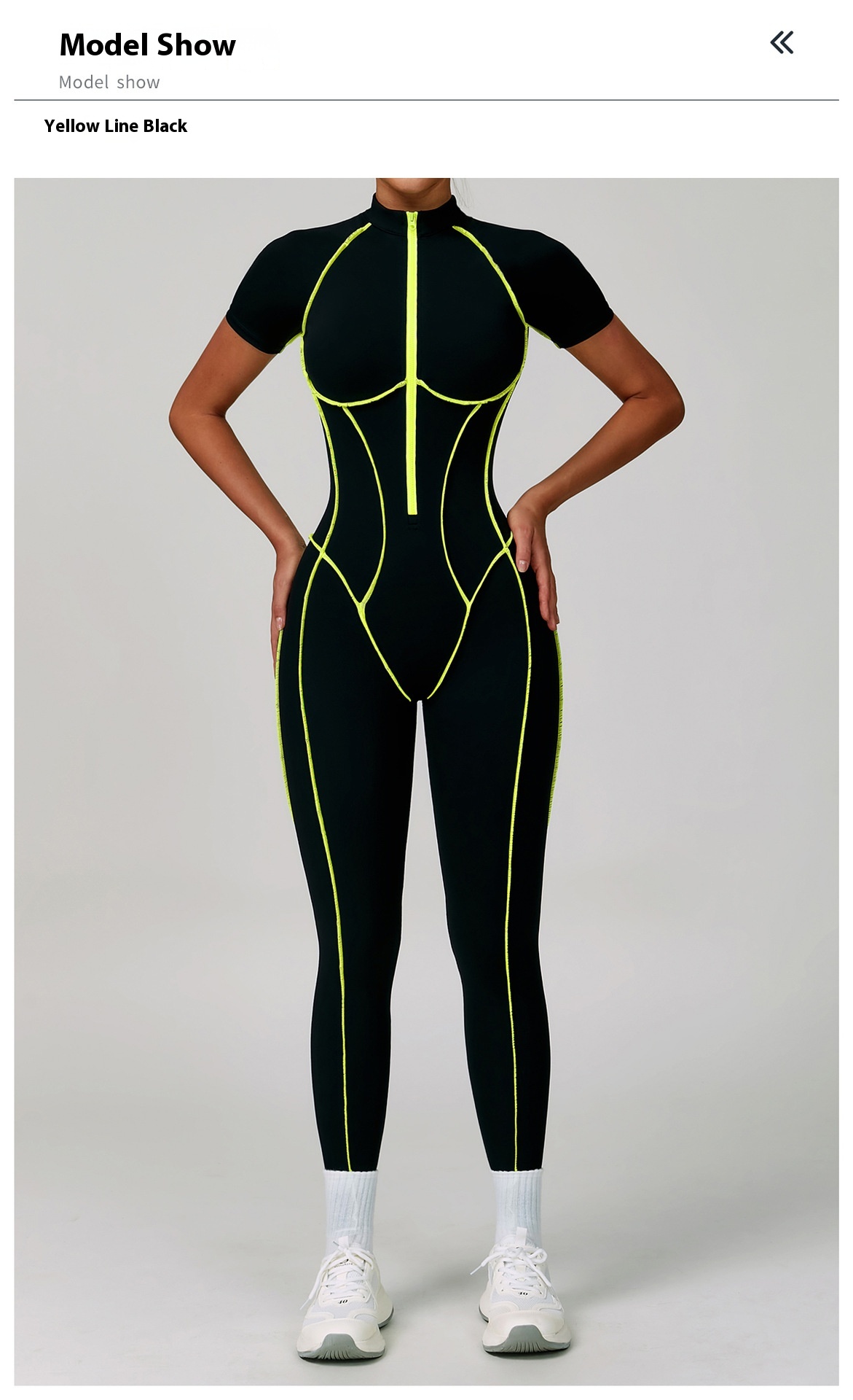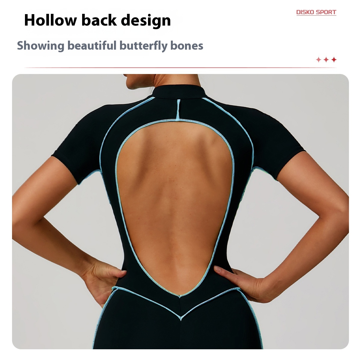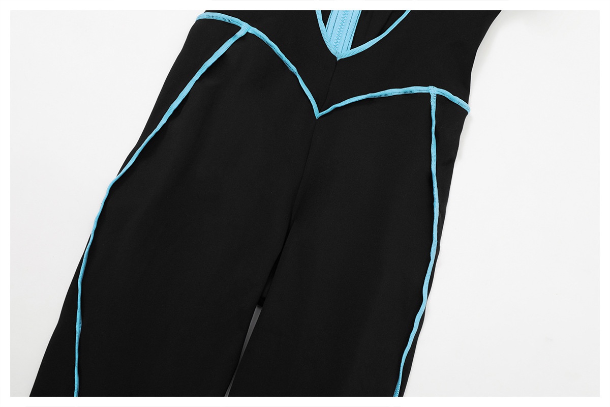 Contrast Color Yoga Workout Clothes Hollow-out Beauty Back Tight Jumpsuit