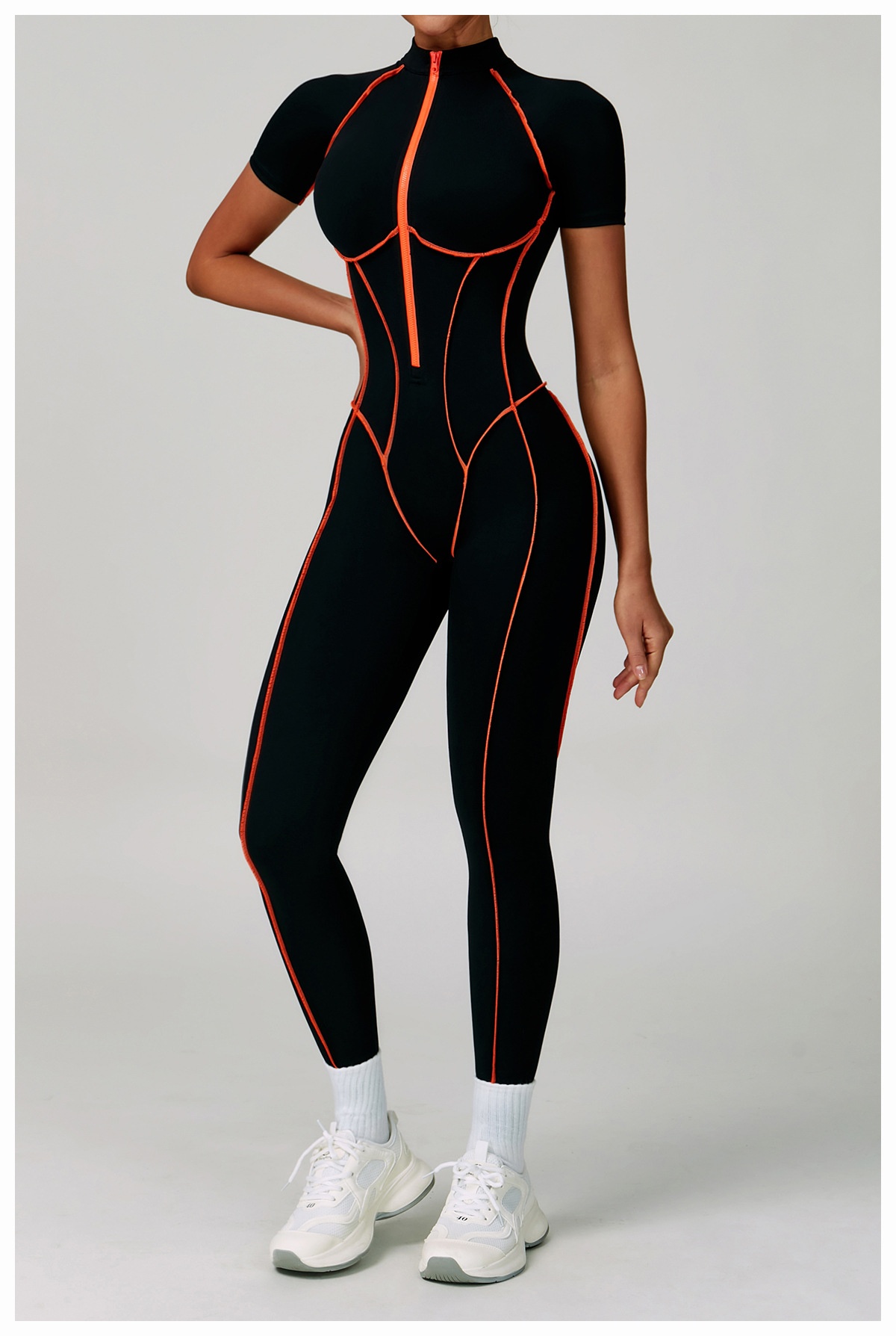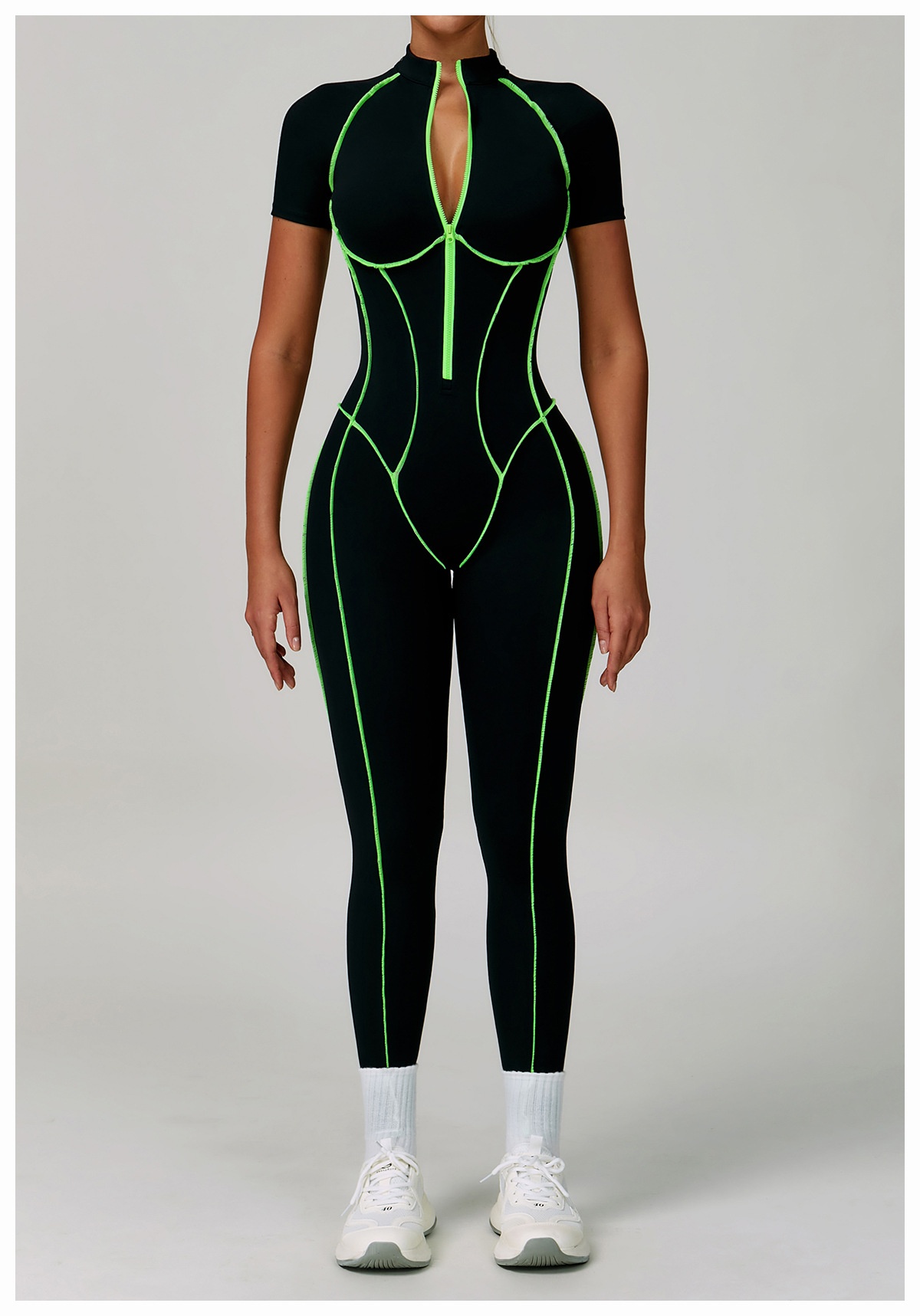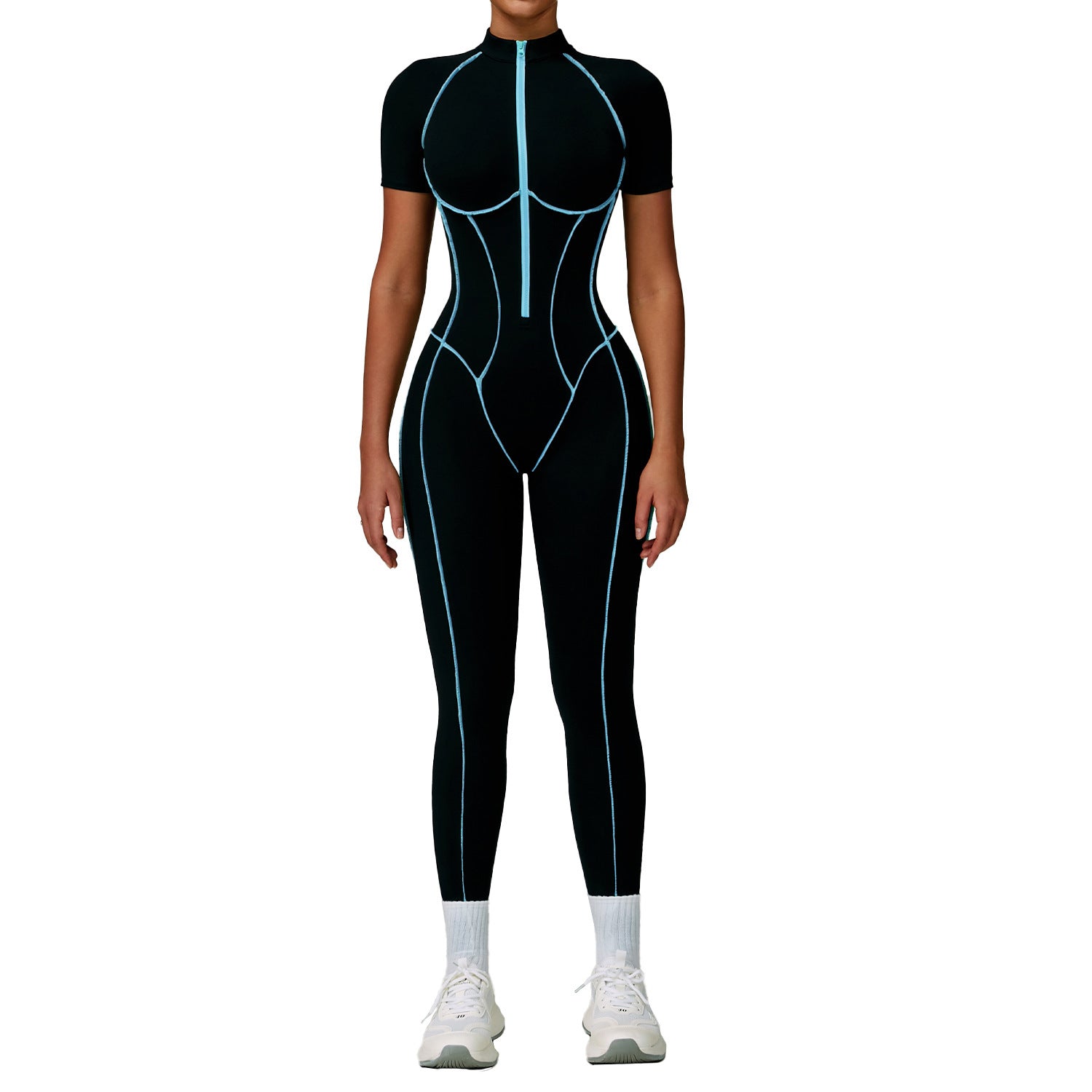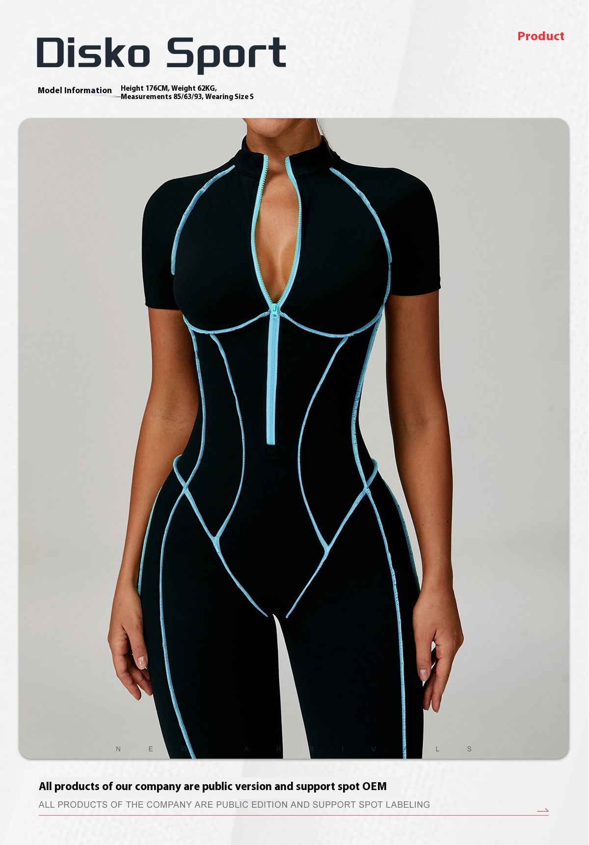 Contrast Color Yoga Workout Clothes Hollow-out Beauty Back Tight Jumpsuit
