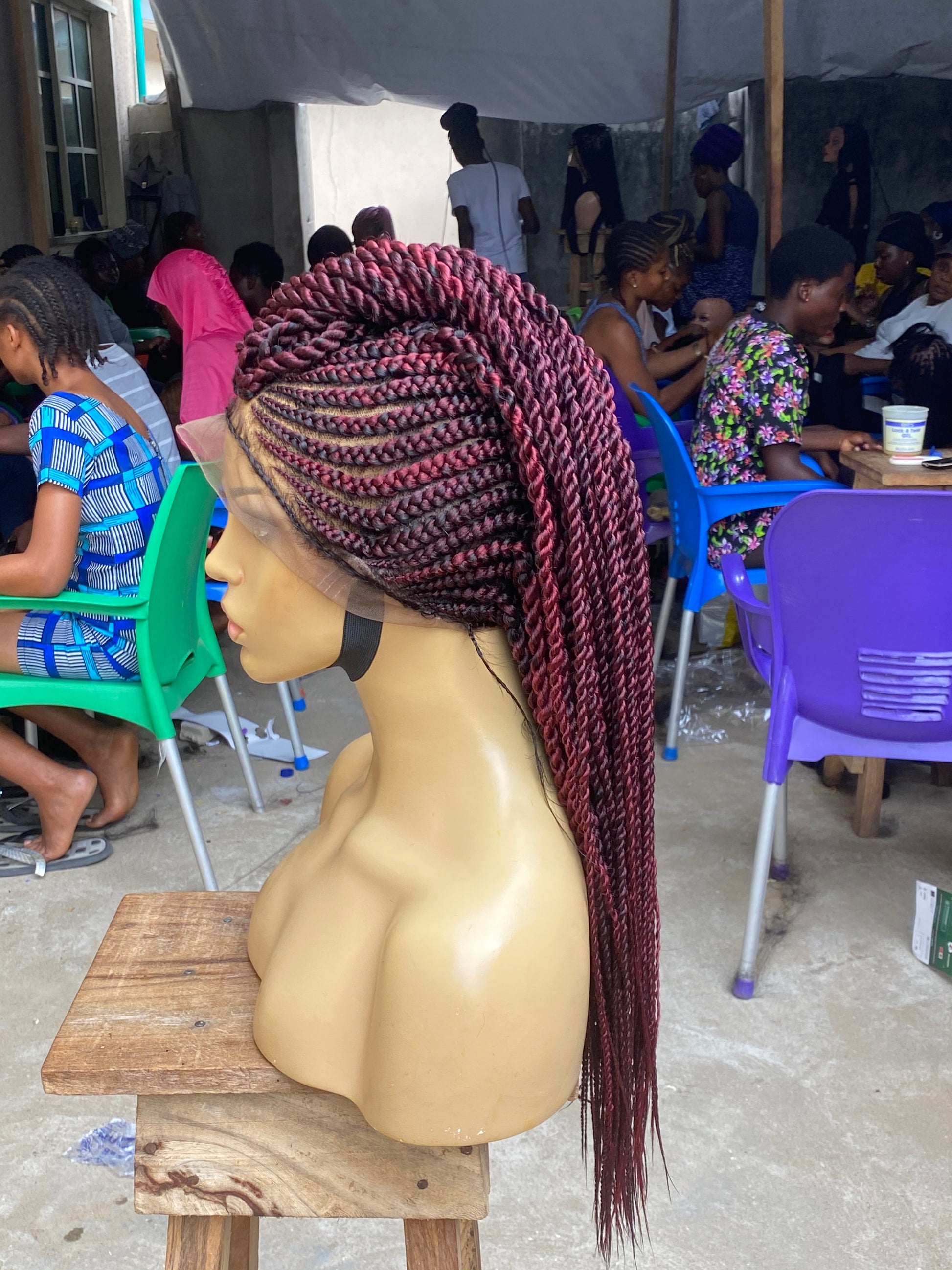 This natural looking custom handmade glueless cornrow braided wig name - Tega is made with 100% human hair, Swiss full lace & the best kanekalon premium fiber for extra length. This unit and all our full lace wig come with 4 combs, an elastic band and an adjustable strap-on to hold it perfectly in place. We offer premium quality wig that look like a scalp, free shipping and 24/7 customer support. No more sitting down in a salon for 8 hours, like gurrrl no! - get your poshglad braided wig, wear it and go. Study shows that braiding on your natural hair causes long term alopecia, receding hairline, baldness and long term hair cancer. With our wigs you don't have to worry about losing your natural hair.