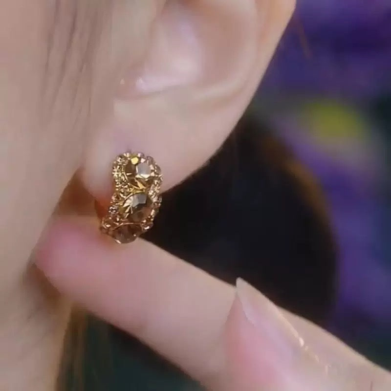 Diamond-embedded Brown Zircon Hoop Earrings