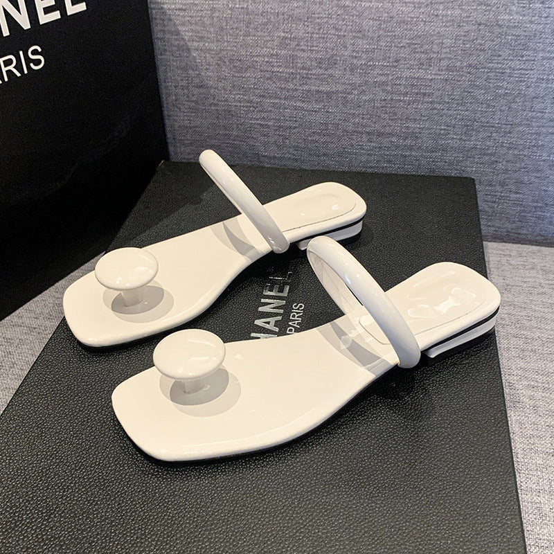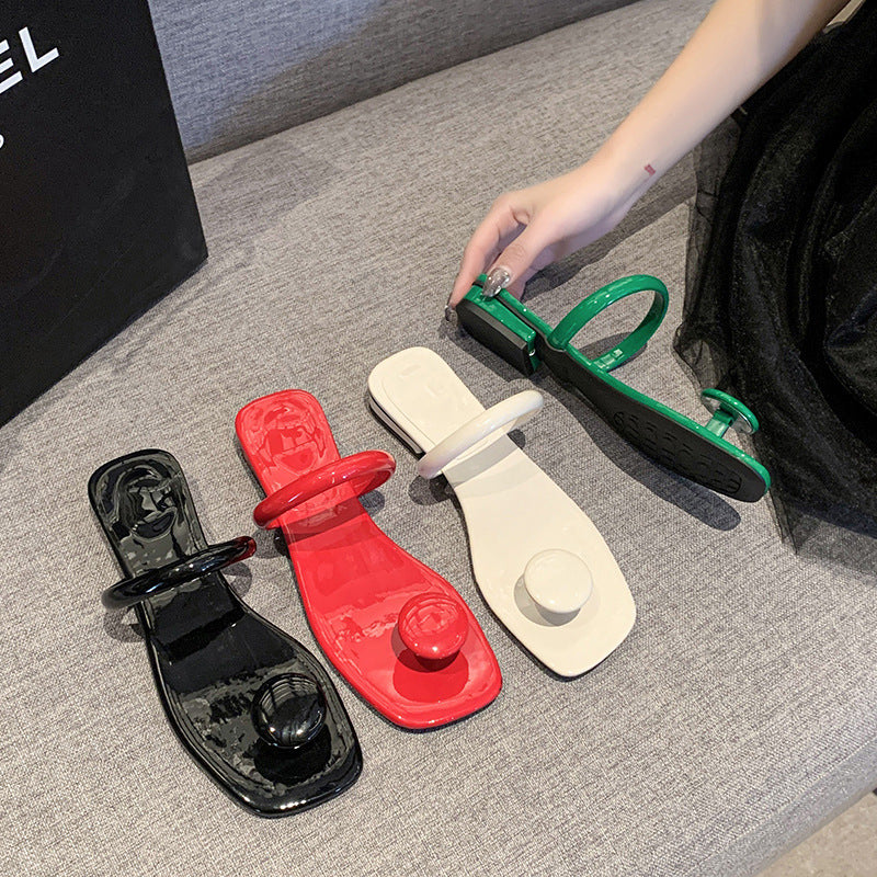 Fashion Patent Leather Beach Square Toe Wedge Sandals