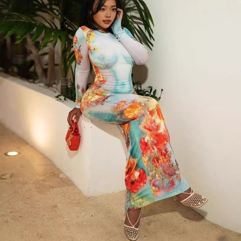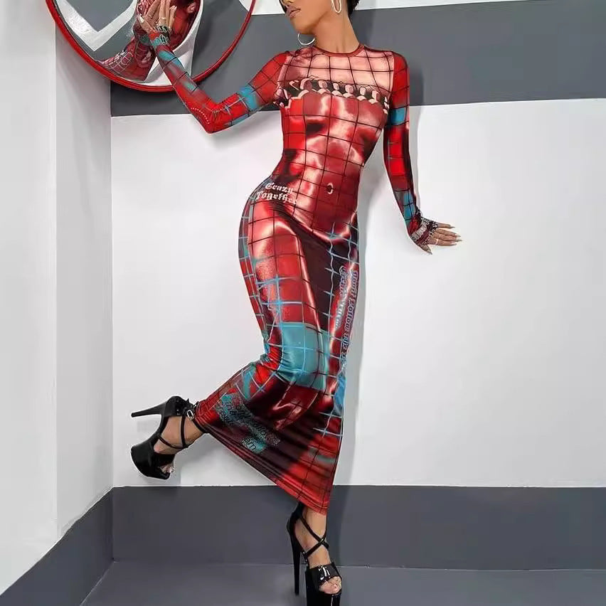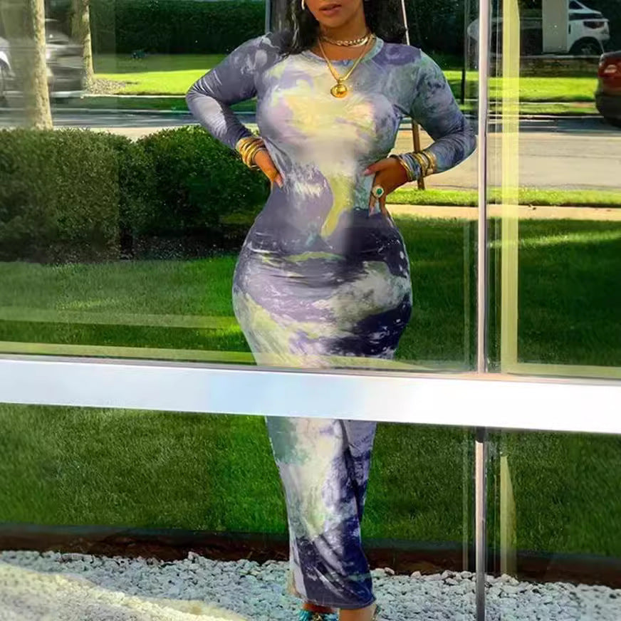Fashion Women's Printed Wear Long Sleeve Narrow Dress