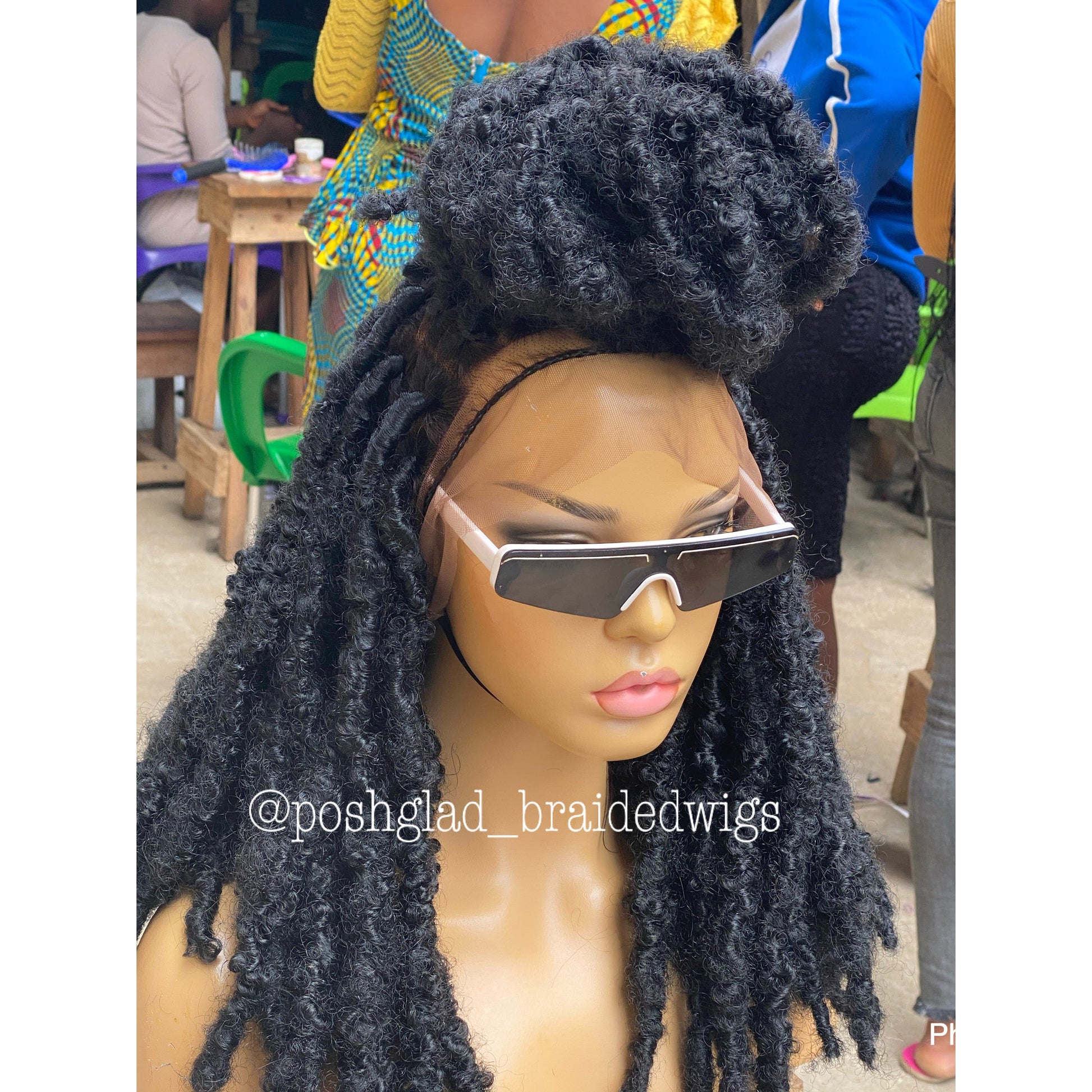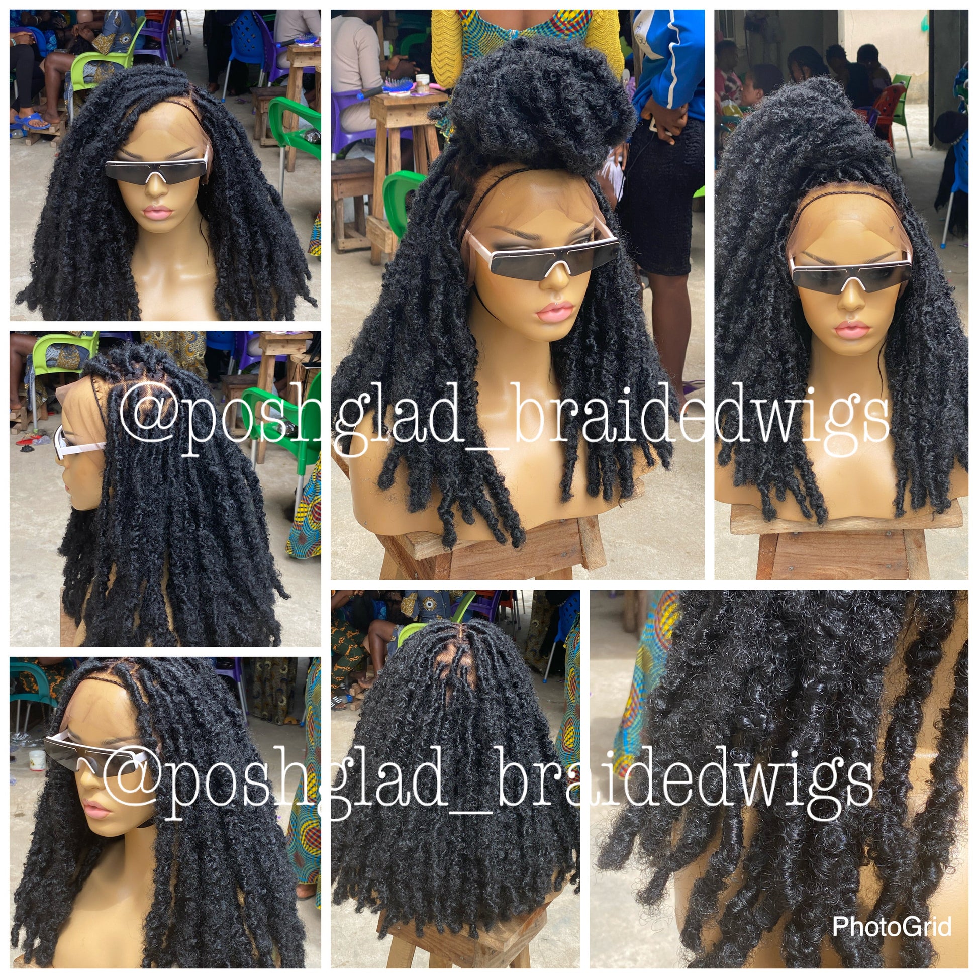 This natural scalp looking glueless handmade faux locs wig name - Angela is made with 100% human hair, Swiss full lace & the best kanekalon premium fiber for extra length. This unit and all our full lace wig come with 4 combs, an elastic band and an adjustable strap-on to hold it perfectly in place. We offer premium quality wig that look like a scalp, free shipping and 24/7 customer support. No more sitting down in a salon for 8 hours, like gurrrl no! - get your poshglad braided wig, wear it and go. Study shows that braiding on your natural hair causes long term alopecia, receding hairline, baldness and long term hair cancer. With our wigs you don't have to worry about losing your natural hair.