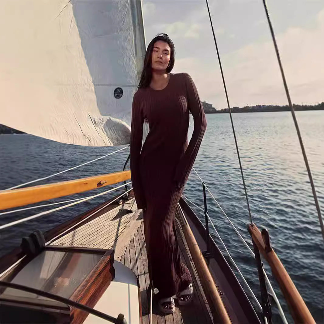 Figure-flattering Foreign Trade Thermal Base Long Sleeve Sweater Dress