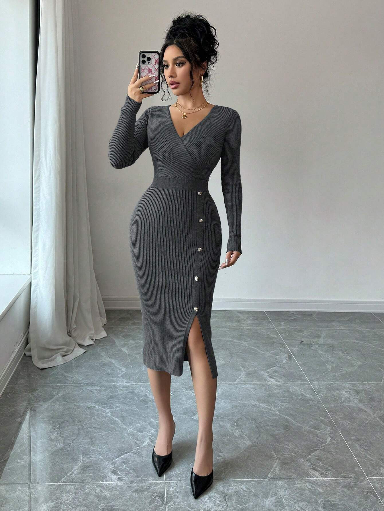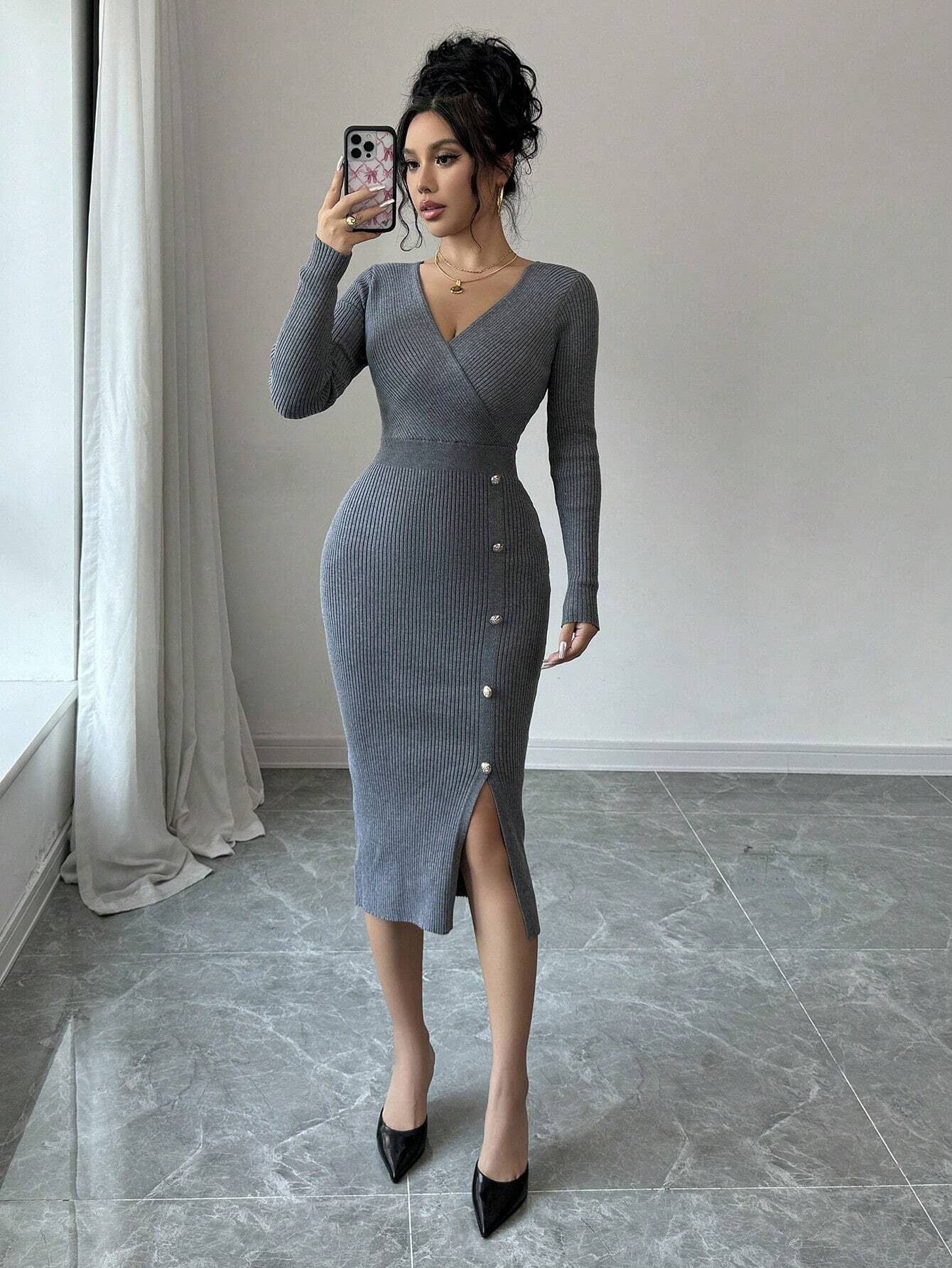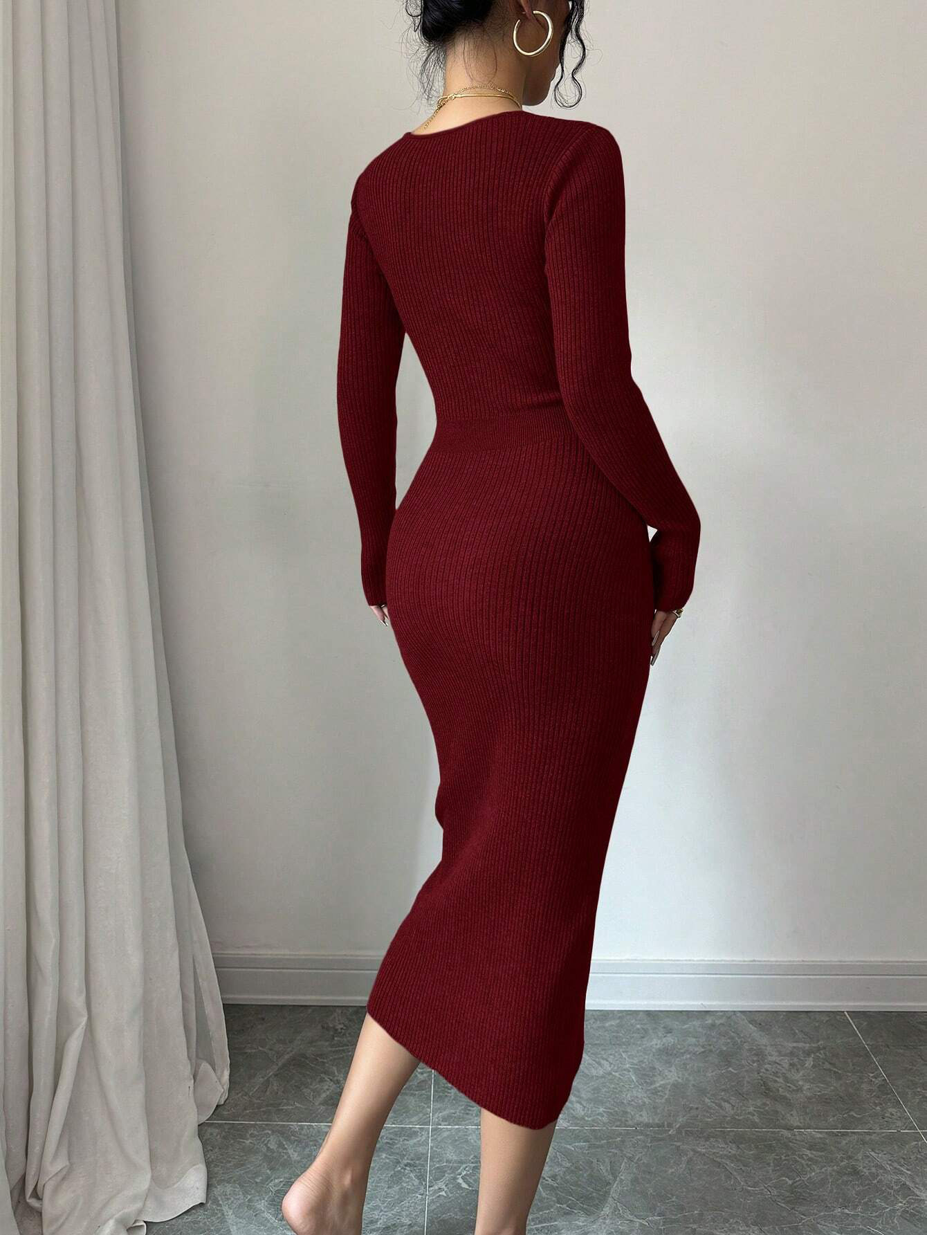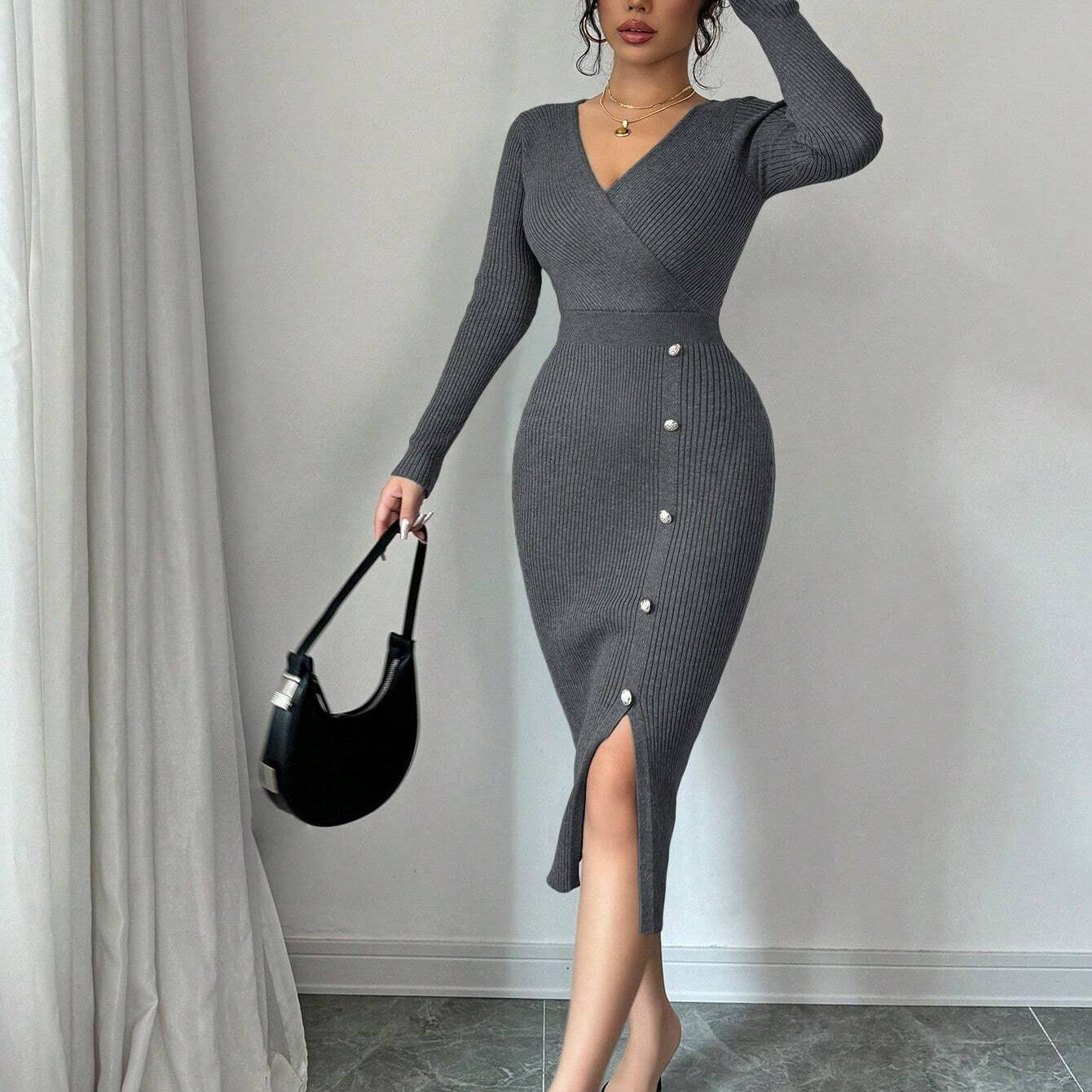 French Waist-tight Mid-length Sheath Inner Wear Base Skinny Knit Dress