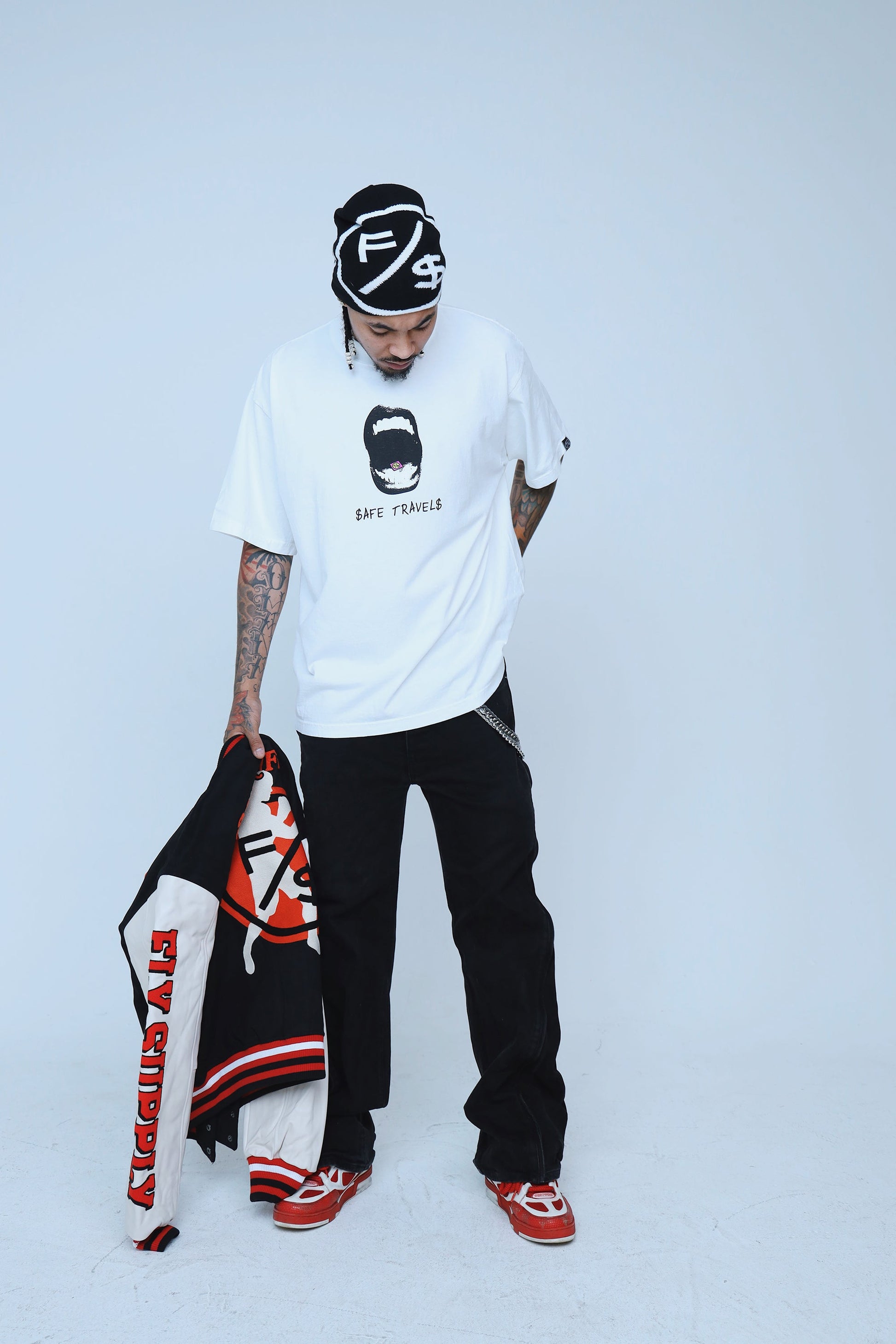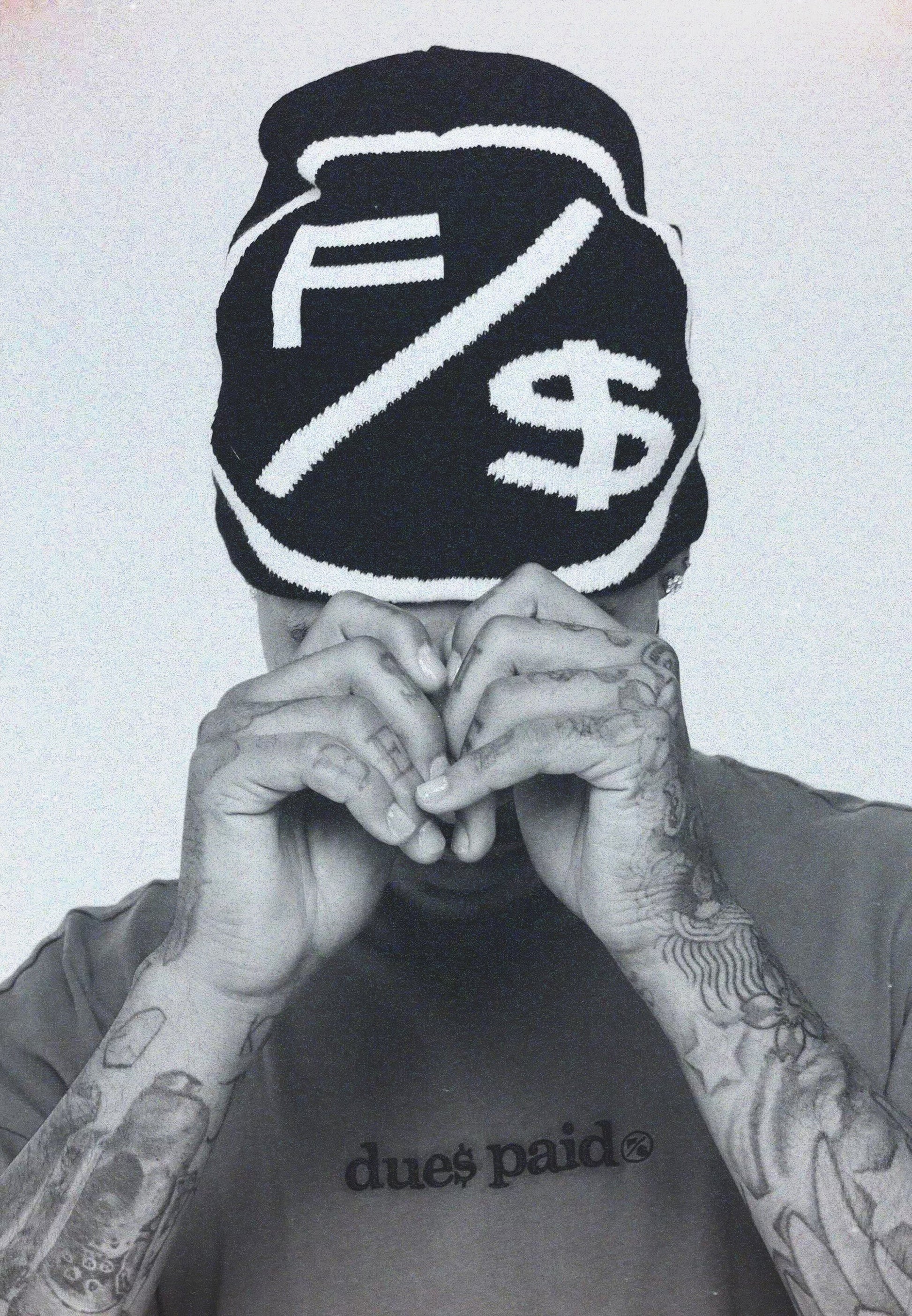 Highly crafted knitted beanies with the "Family Over Money" Psychedelic monochromatic logo on one side & "F/$" Logo on opposite side.