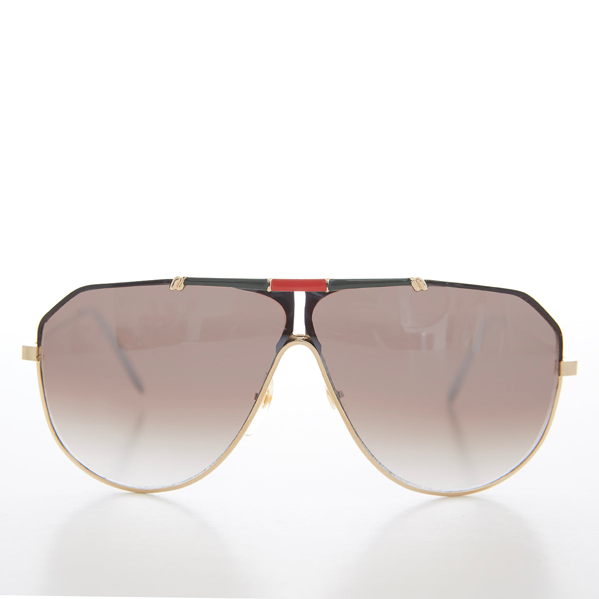 These awesome 80s gold sunglasses feature a striking colored brow bar and gradient flash mirror lens. New old stock. Never worn. Great Condition. UV protection.