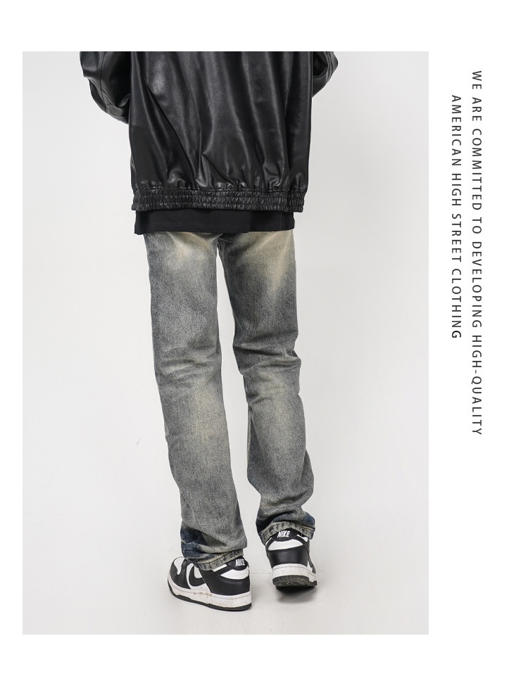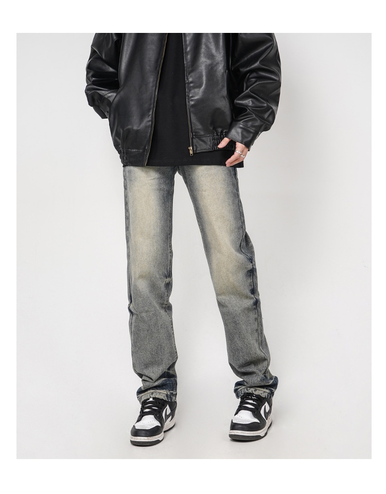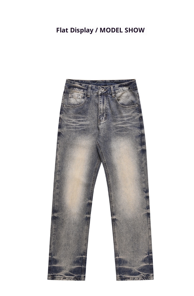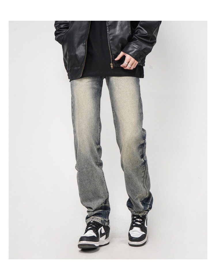 High Street Washed Yellow Mud Dyed Loose Straight Jeans For Men