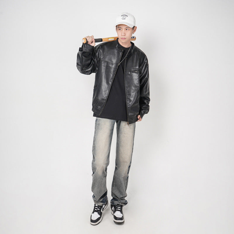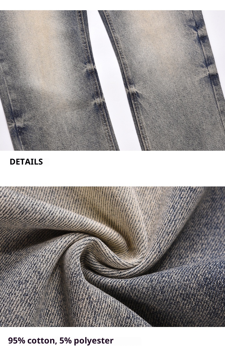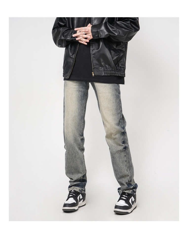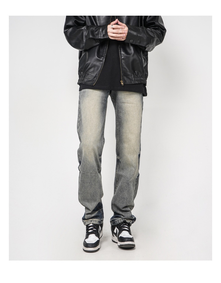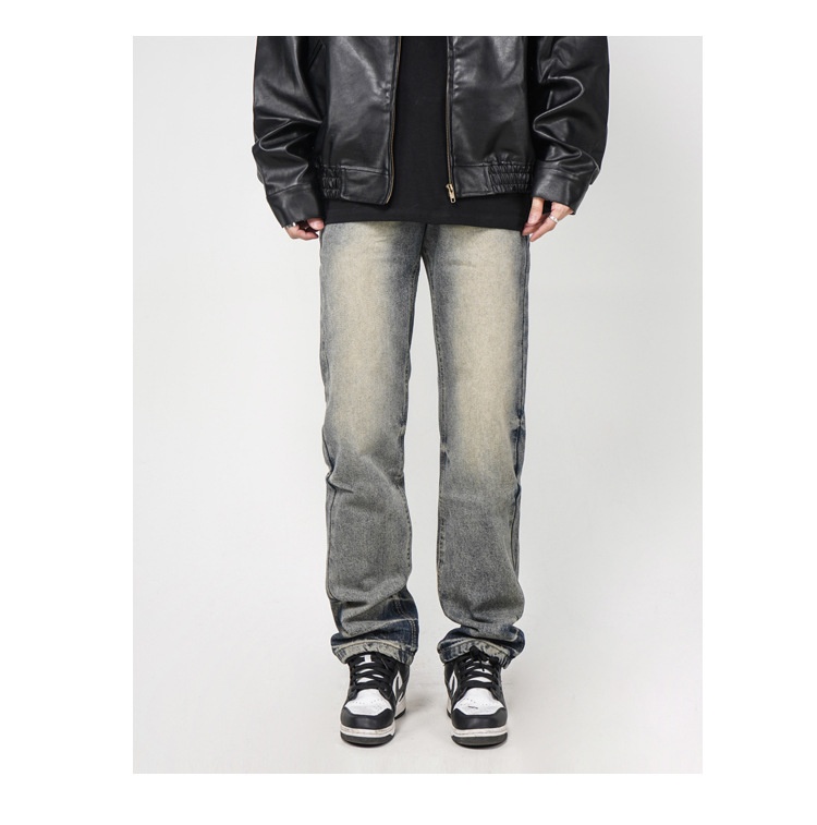 High Street Washed Yellow Mud Dyed Loose Straight Jeans For Men