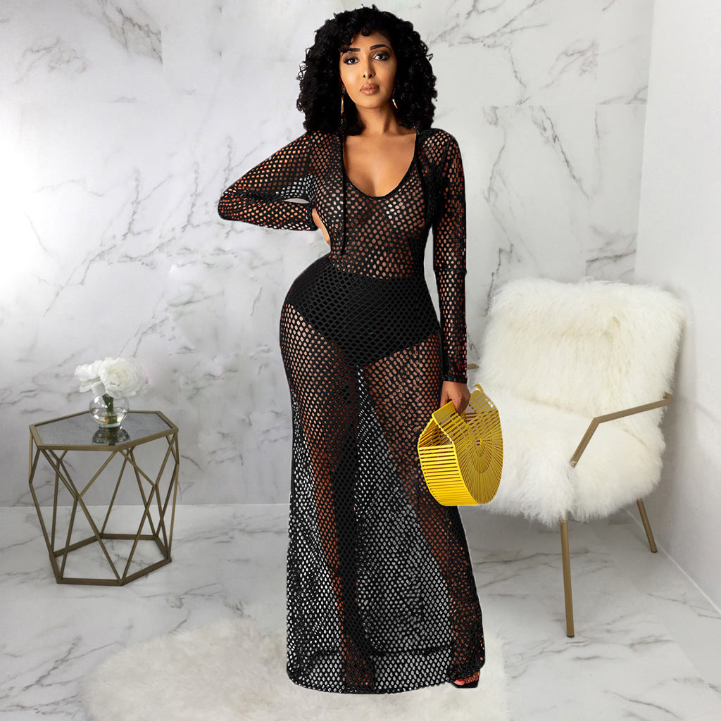 Hollowed Cover Long Skirt Bikini Swimwear Cover-up