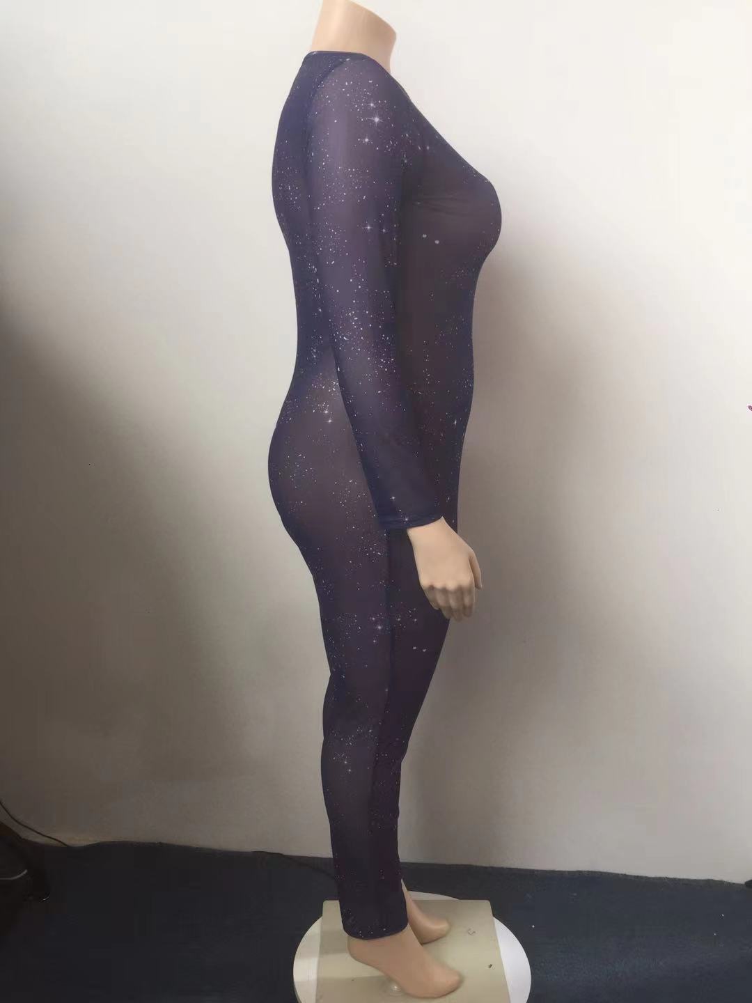 Hot Sale Sheer Temptation Printed Mesh Plus Size Jumpsuit