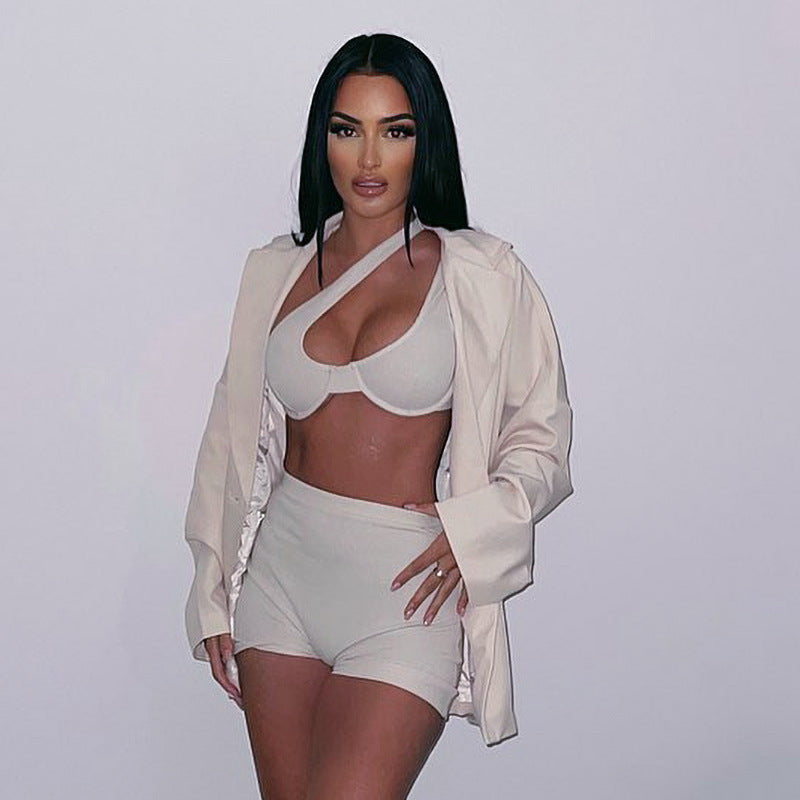 Irregular Shoulder Sexy Wrap Chest High Waist Tight Shorts Suit Women
