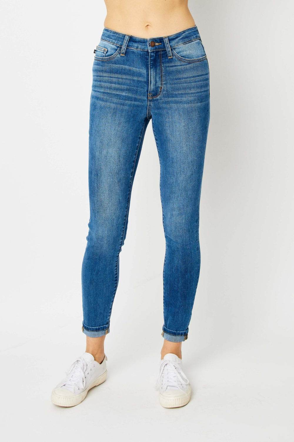 Judy Blue Full Size Cuffed Hem Low Waist Skinny Women Jeans