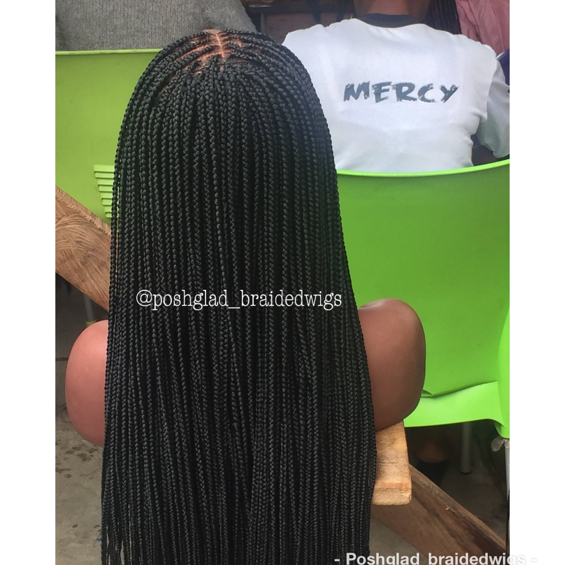Introducing our scalp-looking glueless box braid wig handcrafted from 100% Human hair on a top-quality 13by4 frontal lace and black stretchable mesh cap. This premium quality wig features hair pieces, no combs, or an adjustable rubber band. With the proper care, this wig is designed to last between 2-3 years. Poshglad Braided Wigs - the perfect braided wigs for any occasion