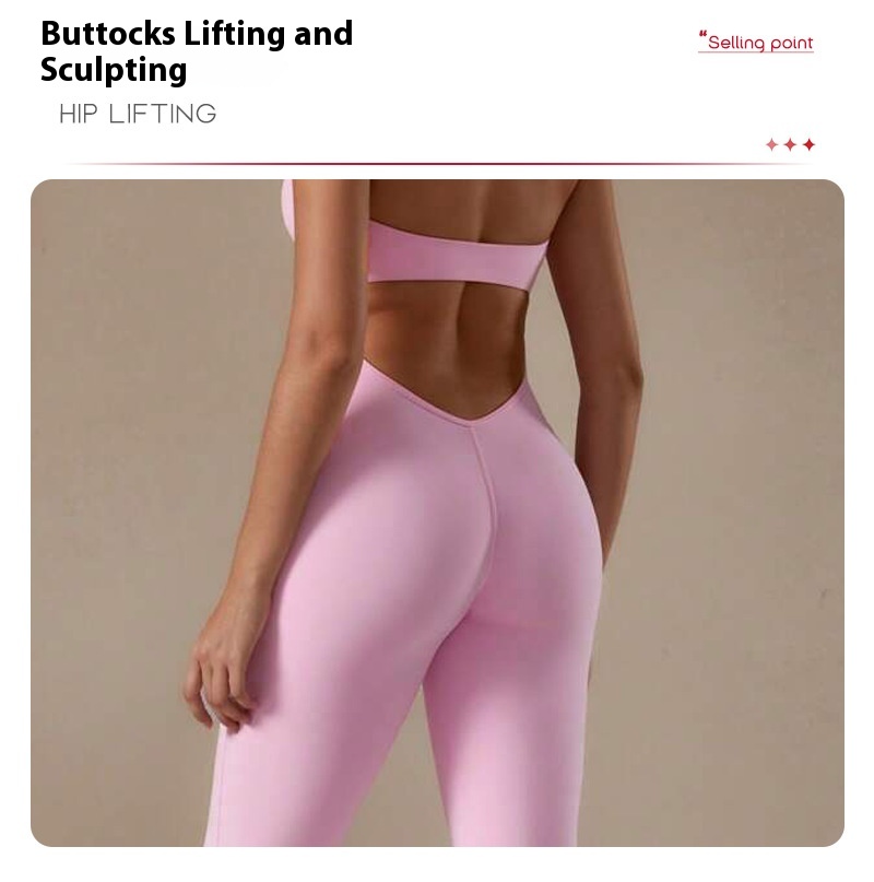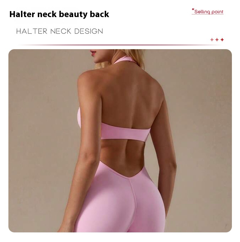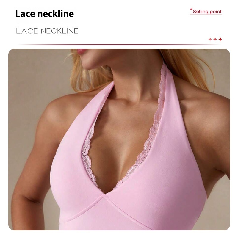 Lace Neckline Yoga Clothes Trousers Running Sports Neck-hanging Jumpsuit