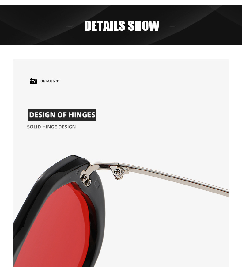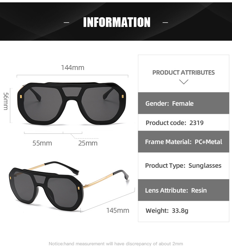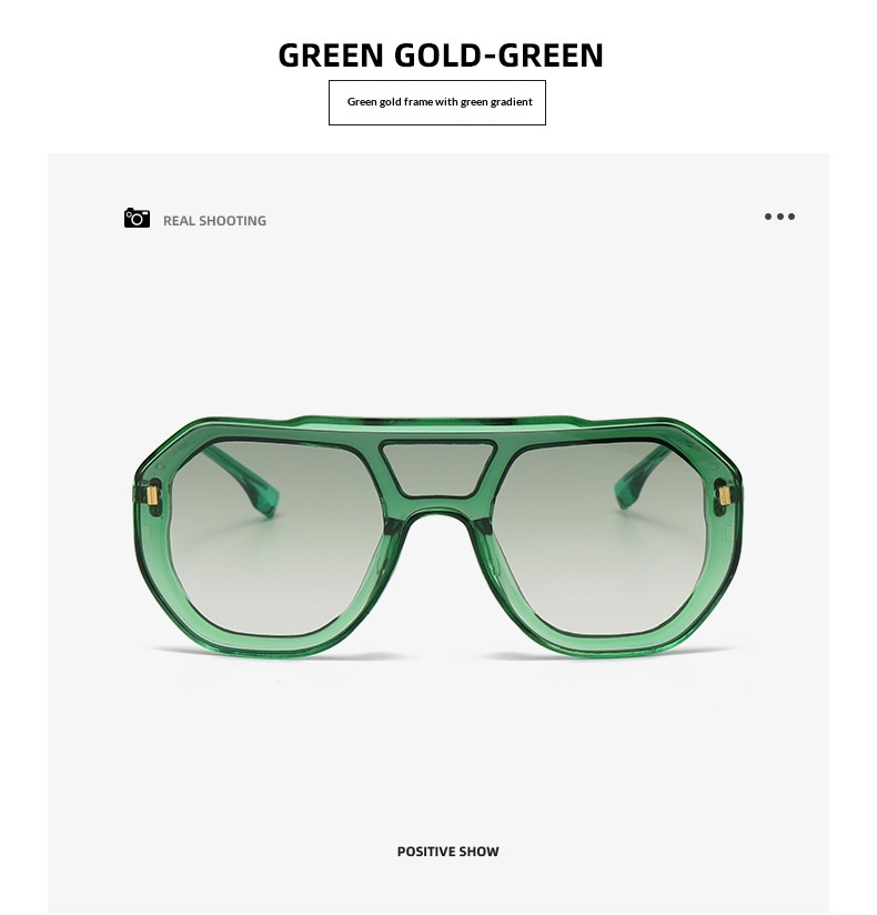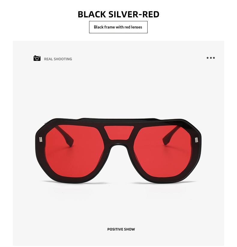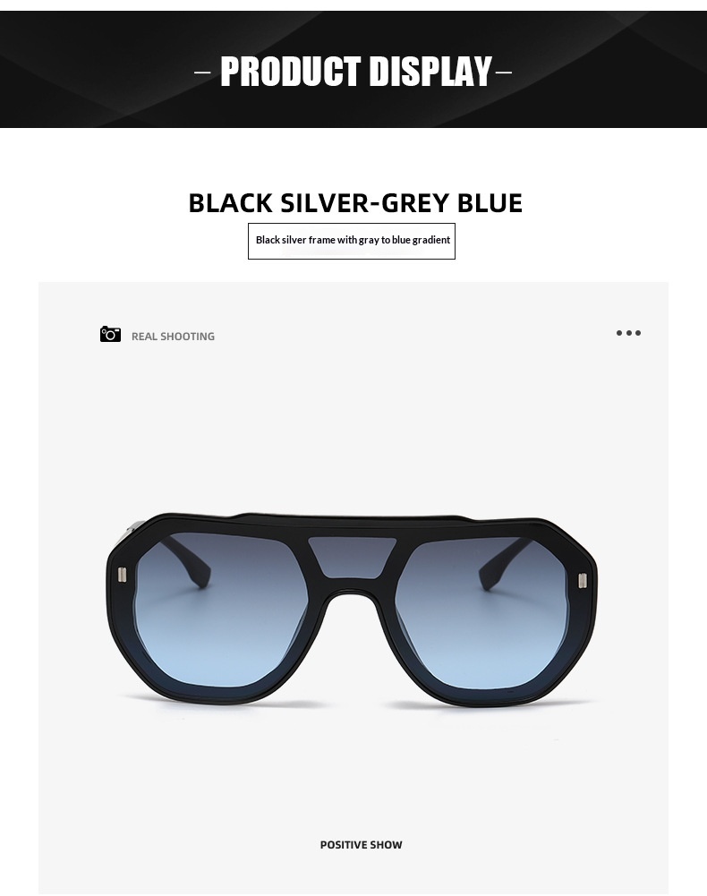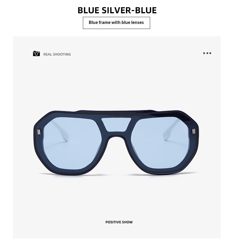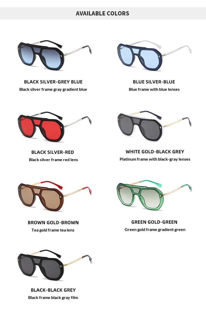 Colors: Black frame with gradient gray-blue lenses, blue frame with blue lenses, black frame with red lenses, white frame with black-gray lenses, brown frame with brown lenses, green frame with gradient green lenses, black frame with black-gray lenses
