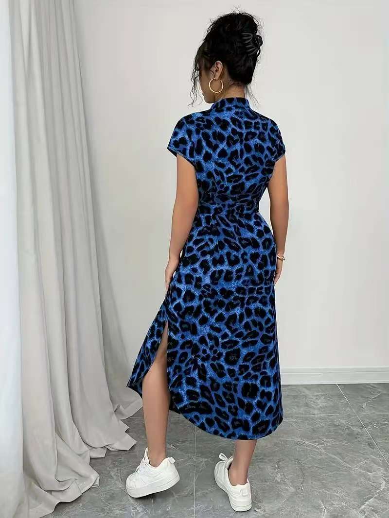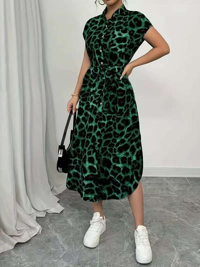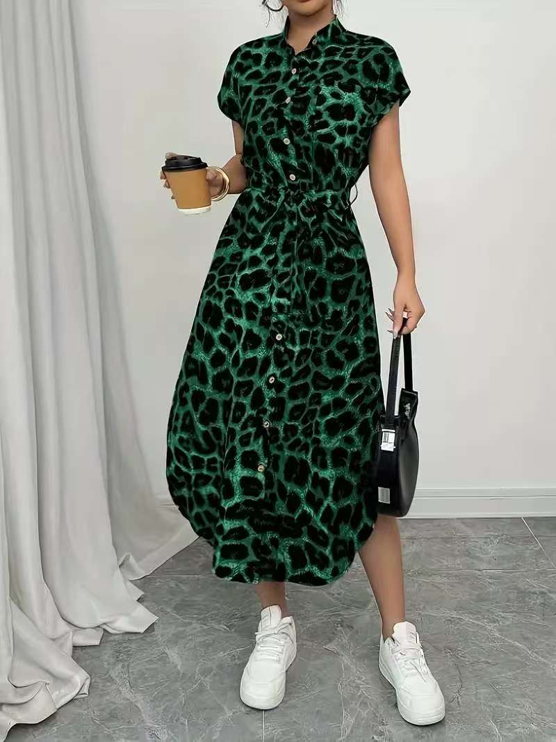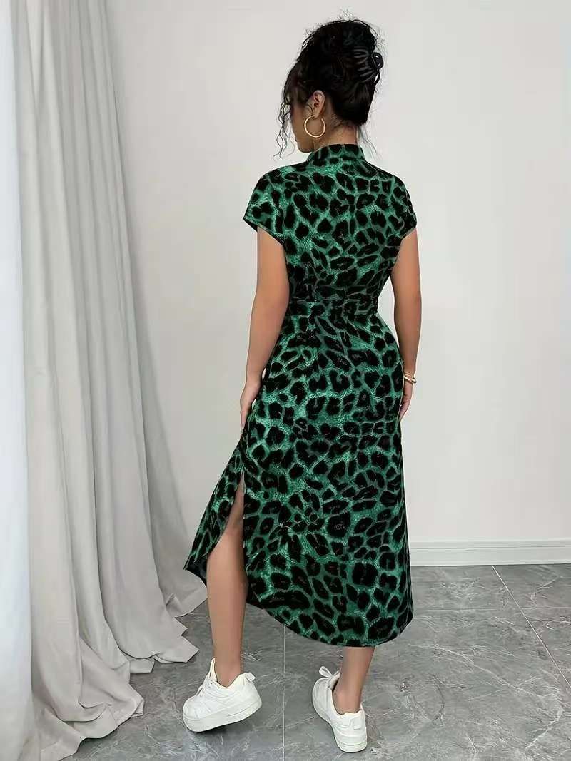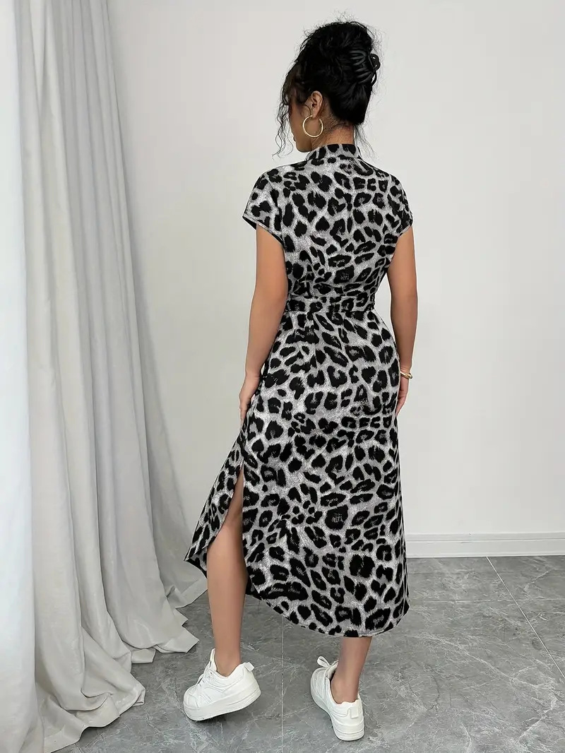 Leopard Print Front Button Shirt Belt Bow Shirt For Women