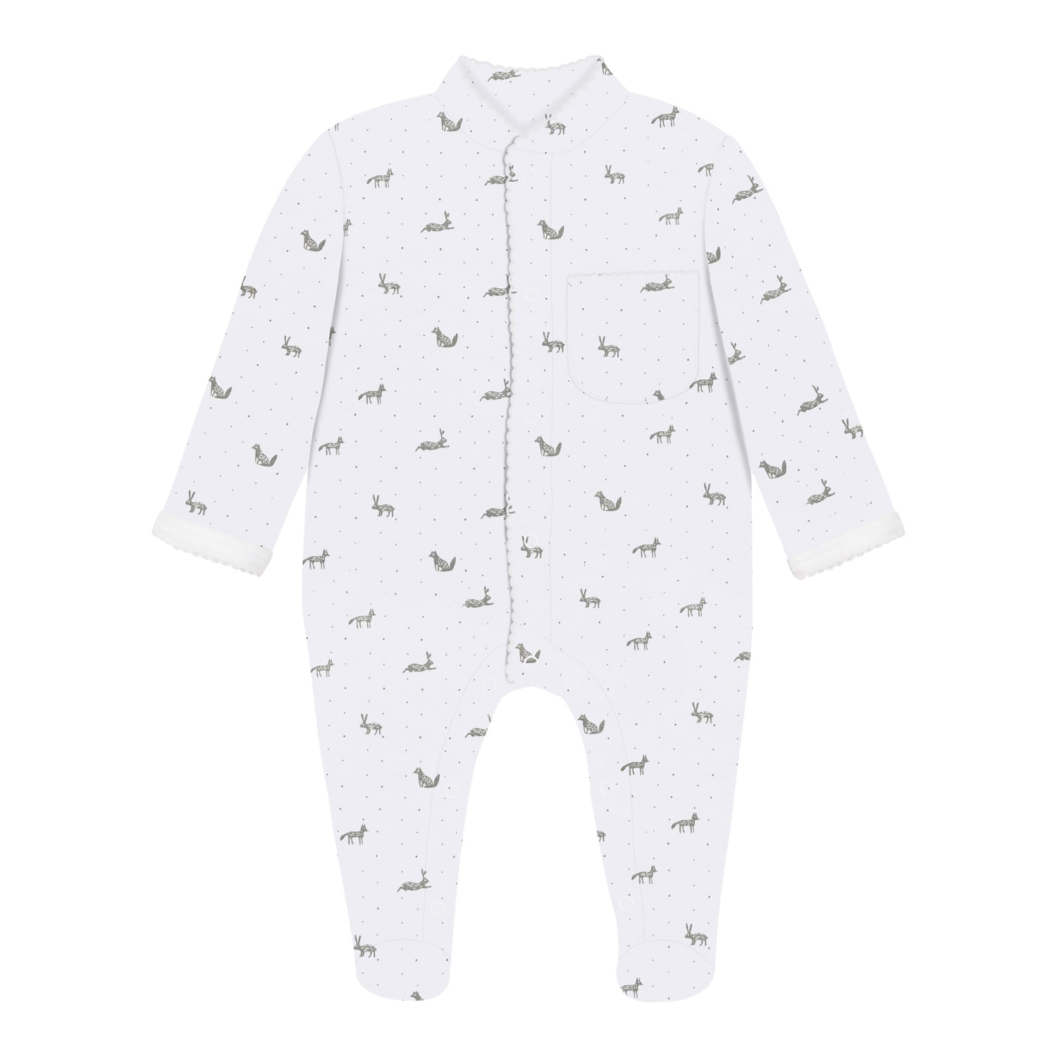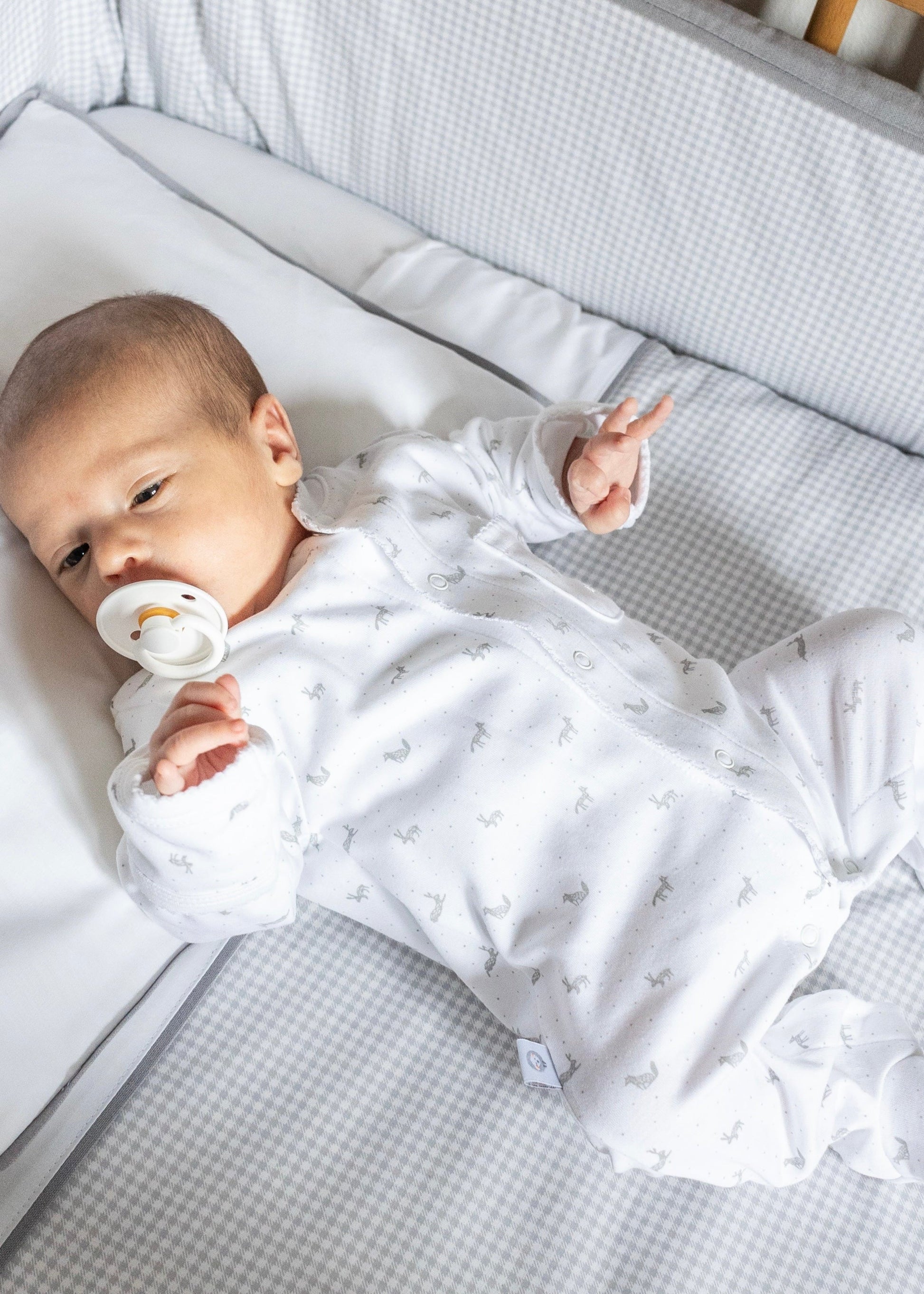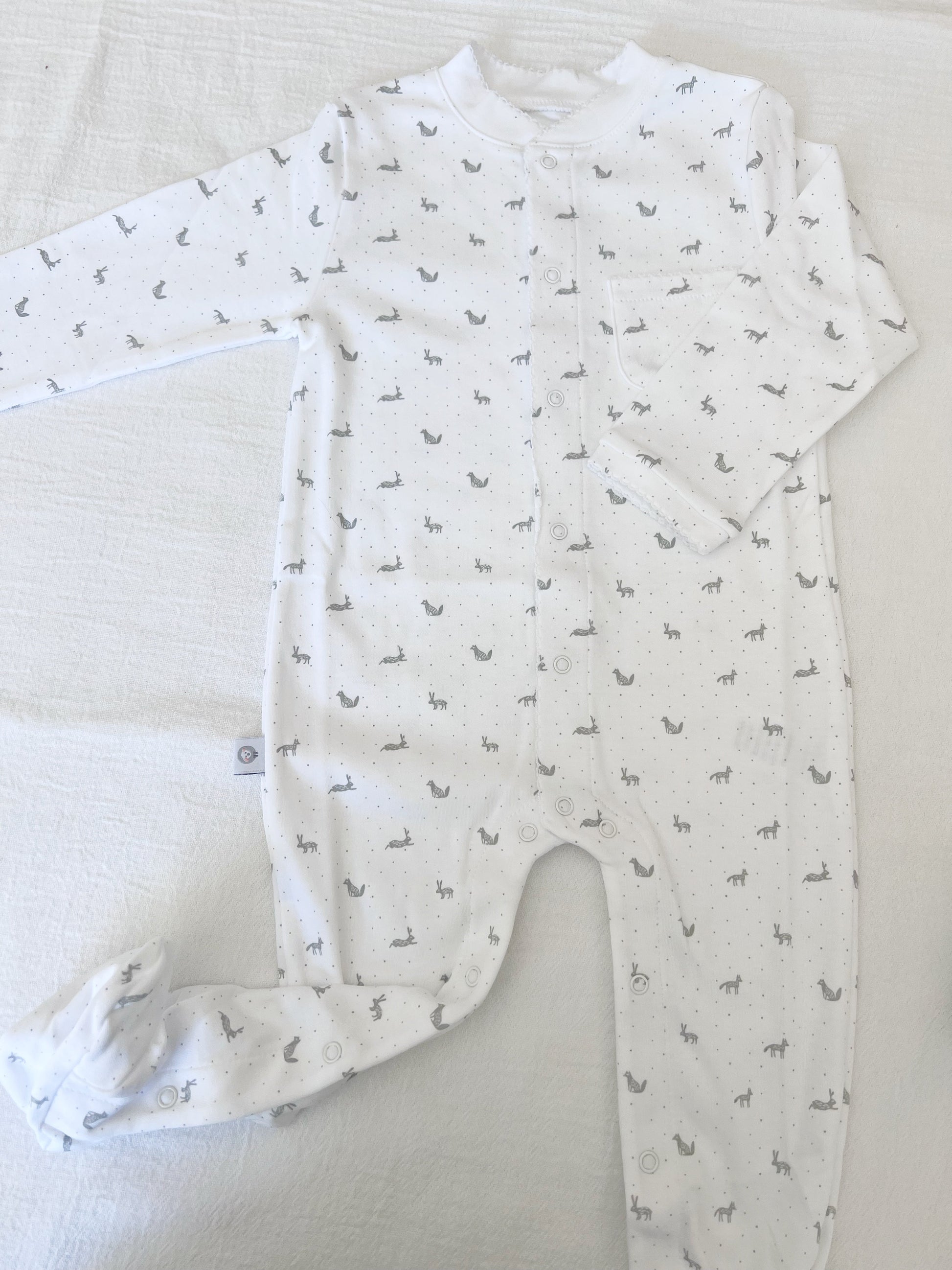 A super cute neutral print with delicate little gray rabbits in our baby sleep and play.