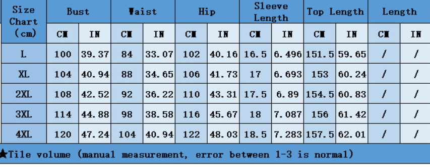 Sizes: L, XL, 2XL, 3XL, 4XL