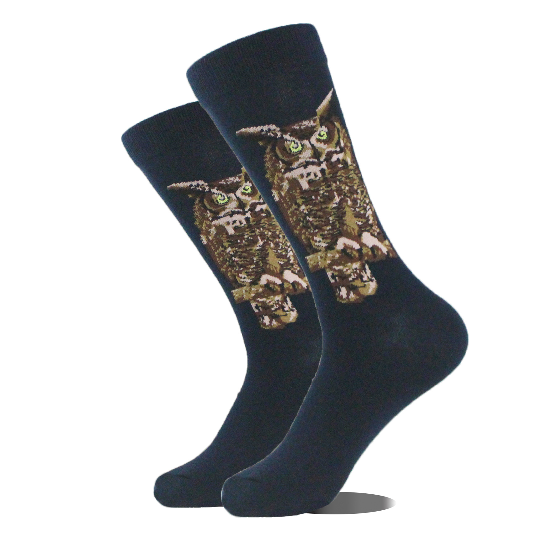 Men's Cartoon Animal Retro Oil Painting Mid-calf Socks