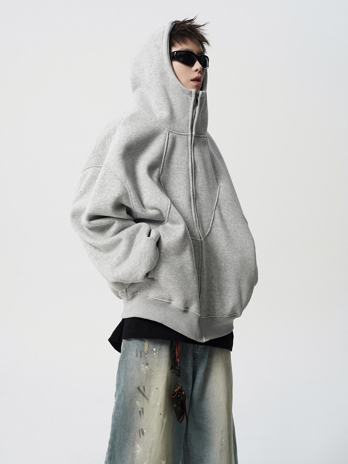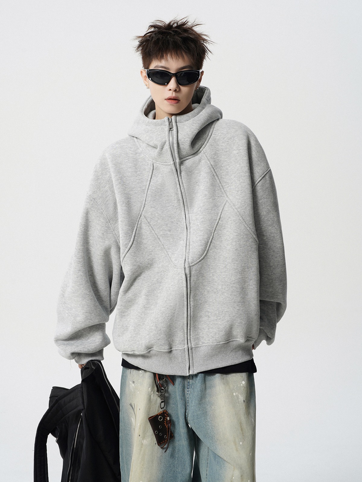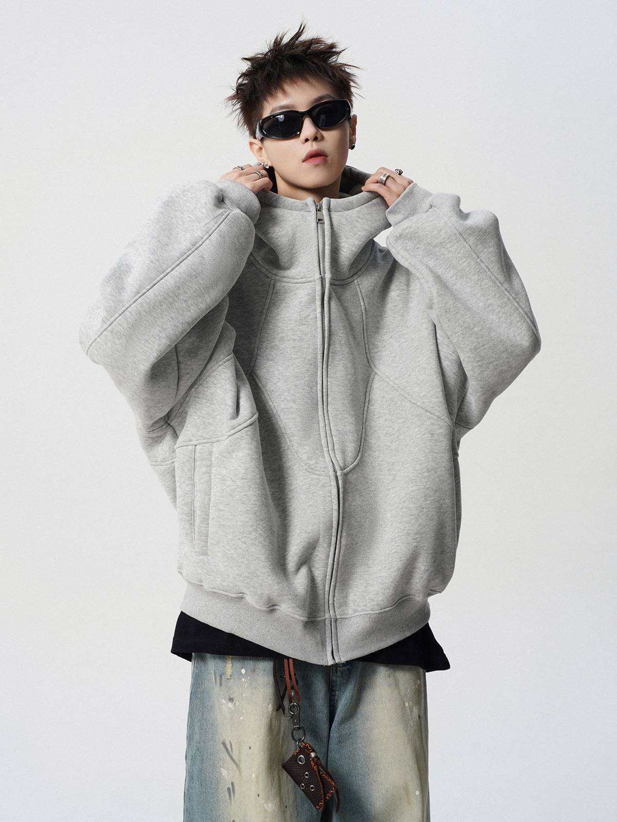 Men's Loose Design Stitching Zip-up Hooded Sweater
