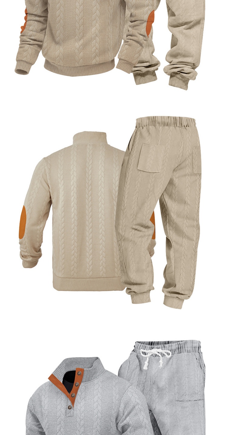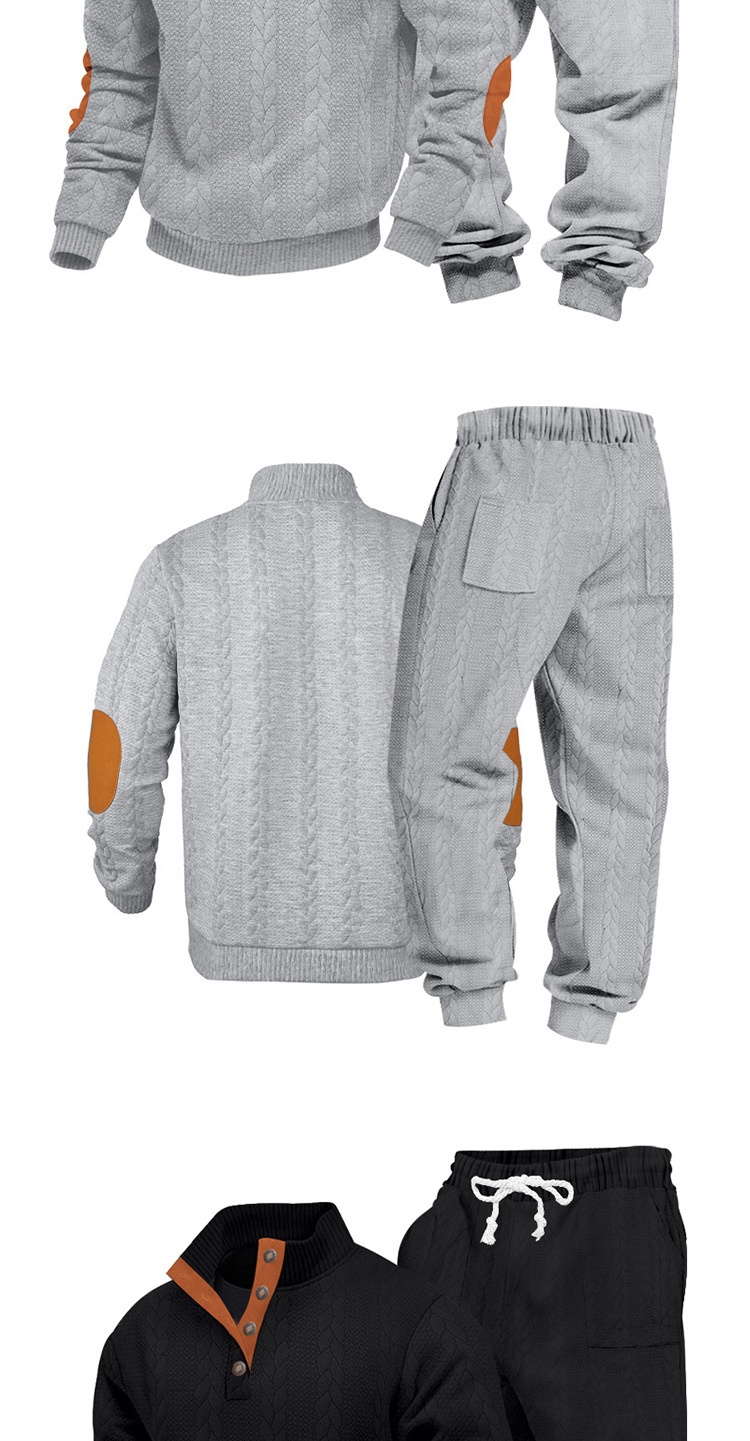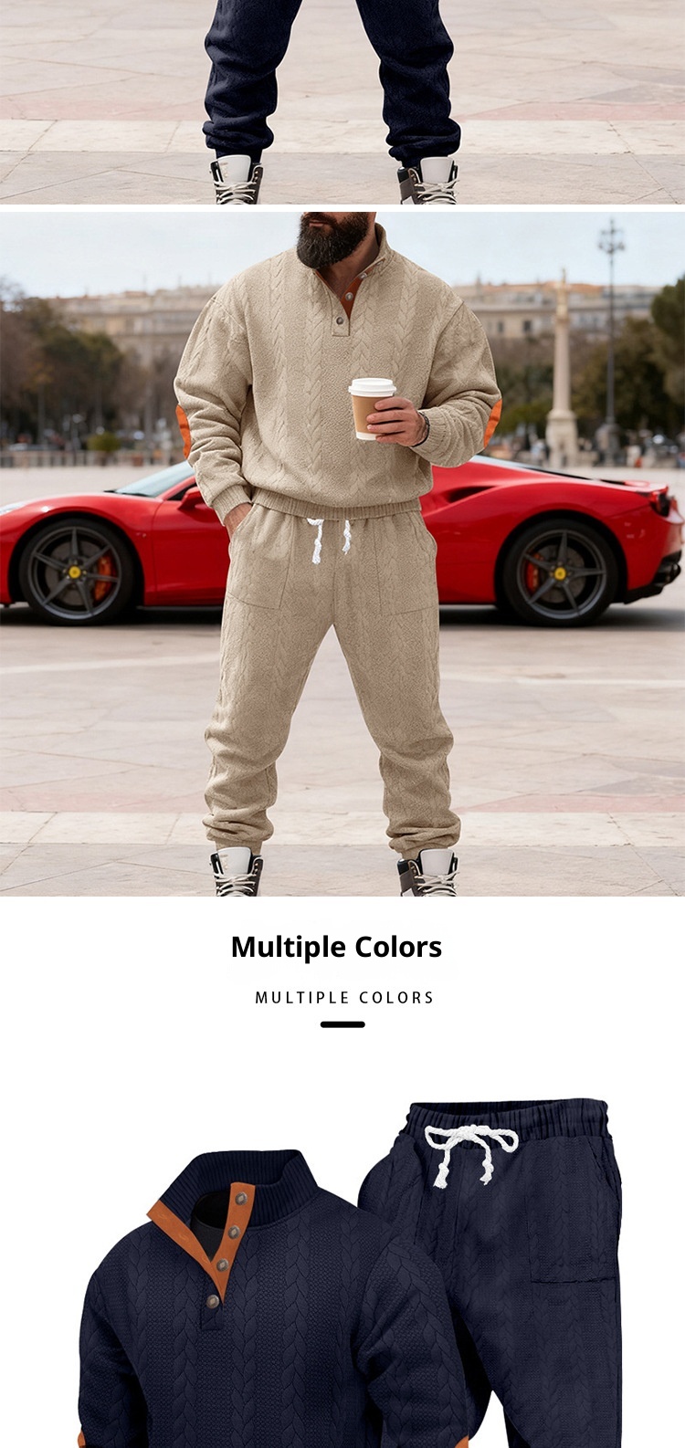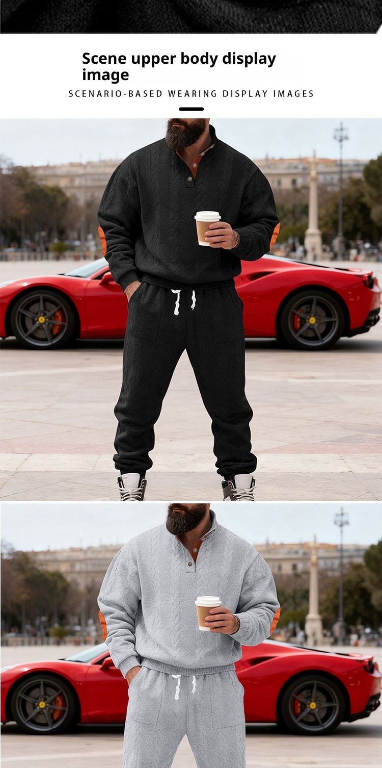 Men's Loose Stand Collar Henley Sweatshirt Casual Pants Set