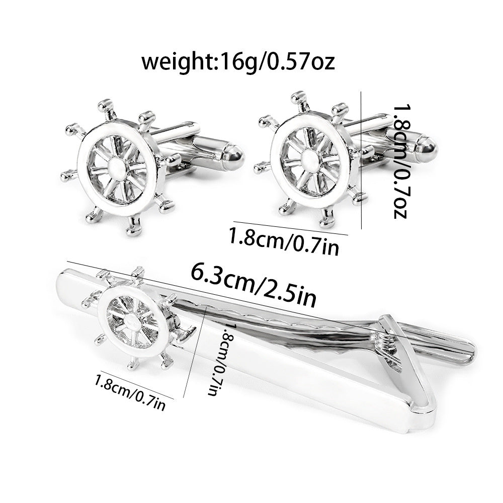 Men's Trendy Rudder Cufflinks and Tie Clip Set
