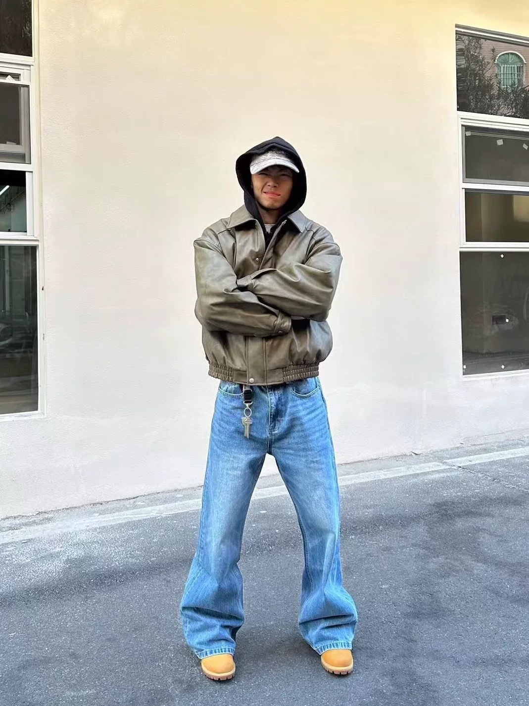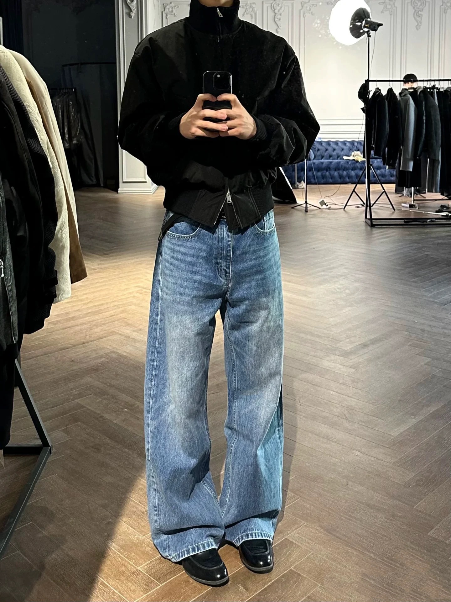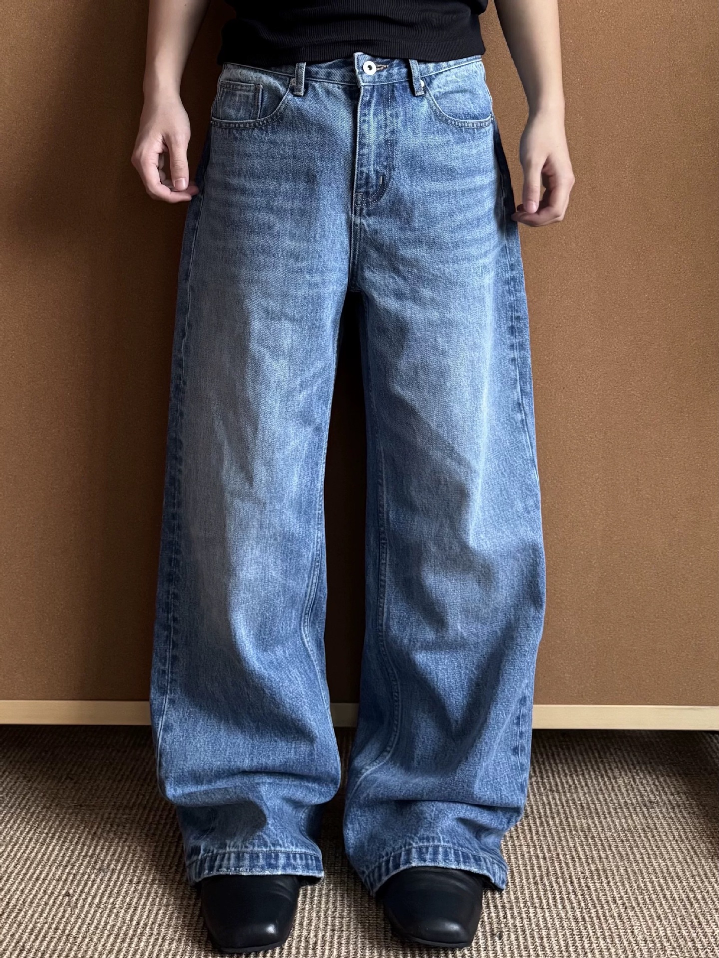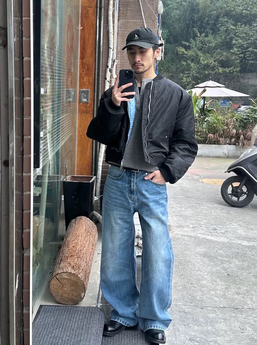 Men's Washed Distressed A- Line Loose Straight Jeans