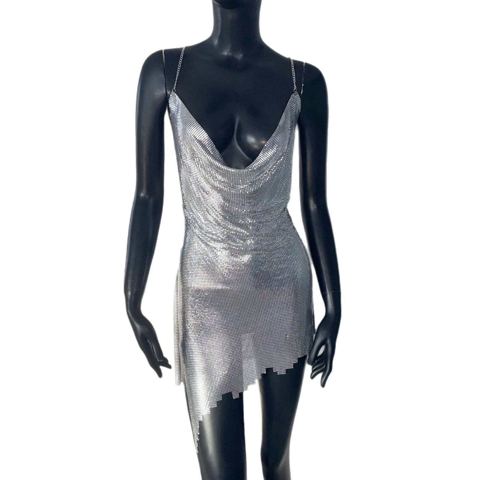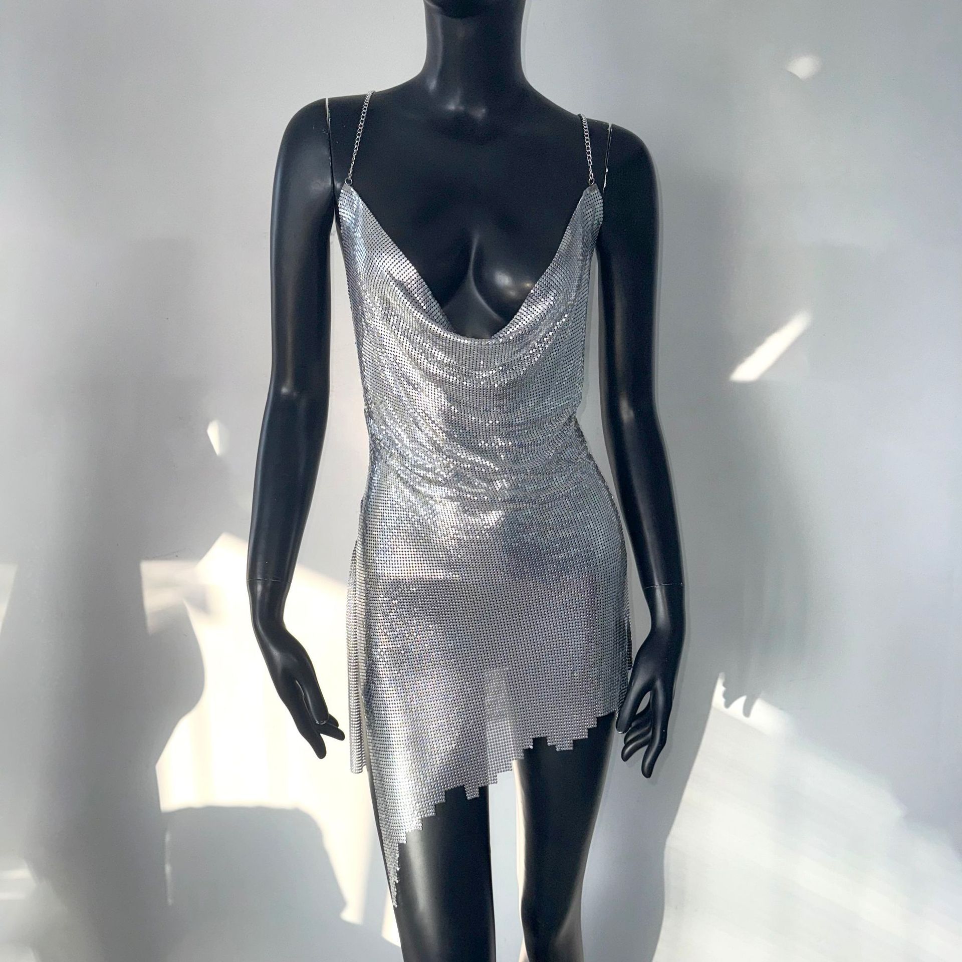 Metal Sequins Short Halter Spaghetti Straps Dress