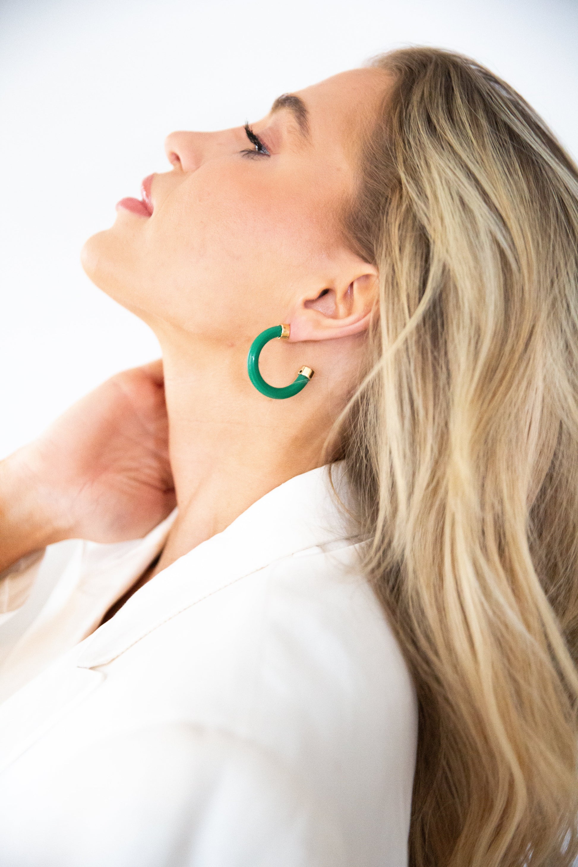 Your go-to mini hoop for everyday wear. Our 1-inch Hoo Hoops are lightweight, water-friendly, and made to move with you—from early morning errands to late-night laughs with friends. Perfect for layering or making a subtle statement, these hoops add a pop of color without ever getting in your way.