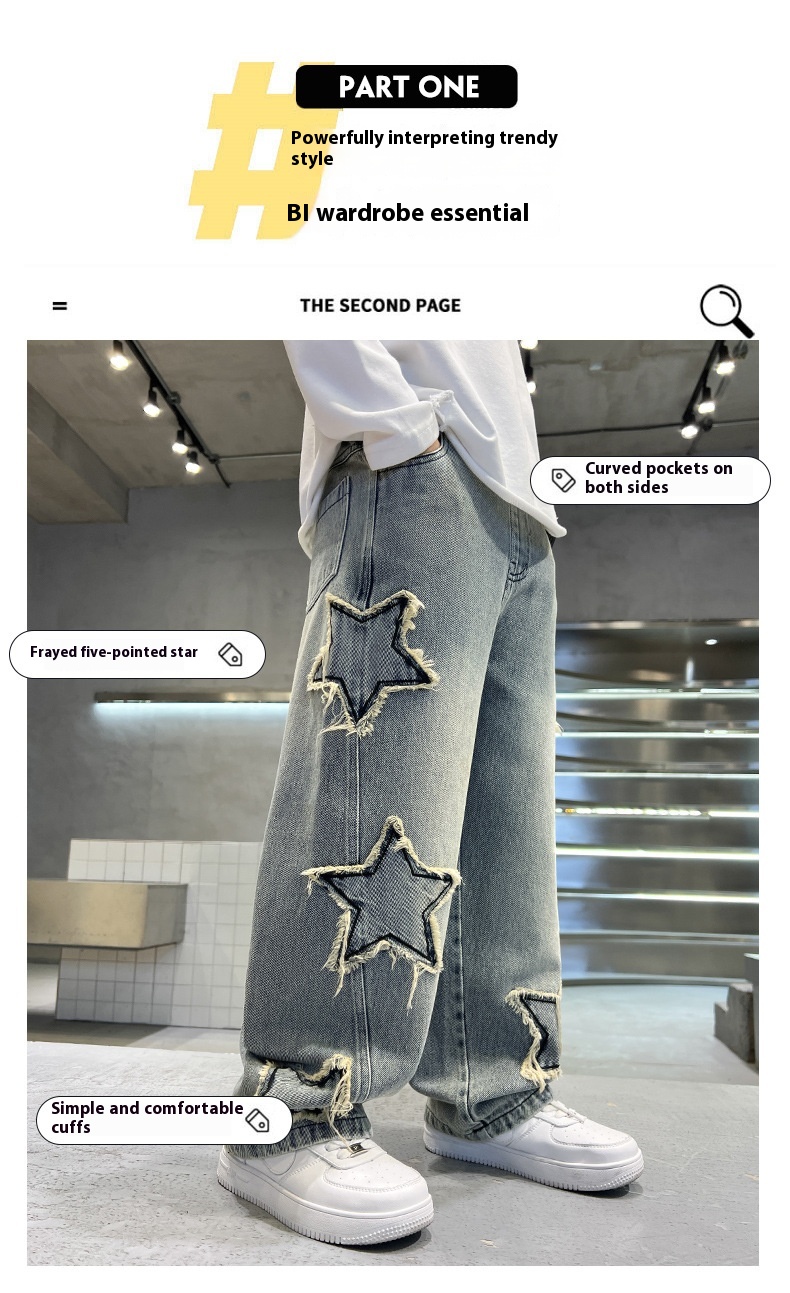 New Big Children Wide-leg Pentagram Jeans