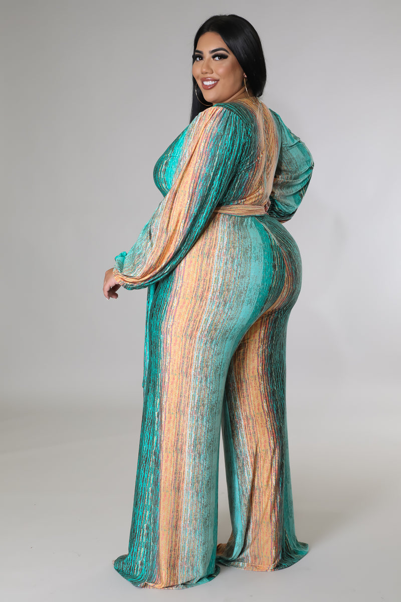Effortlessly elevate your style with PARADISE AWAITS | JUMPSUIT. This versatile jumpsuit features a stretchy fabric with a V neck and long sleeves for a comfortable fit. The self tie belt cinches at the waist, while the wide legs create a flattering silhouette. Complete with a zipper, it's perfect for any occasion, from brunch to a date.