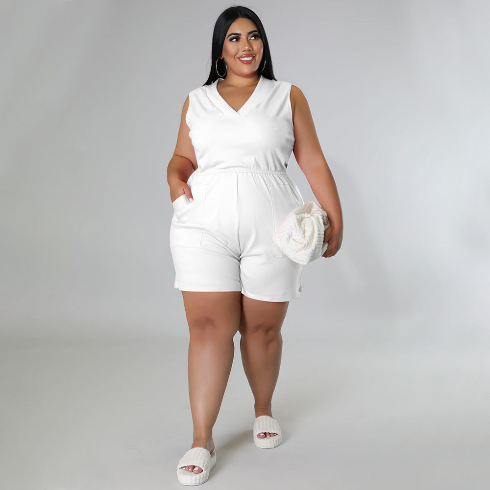 Plus Size Women's V-neck Solid Color Sleeveless Casual Waist Overalls