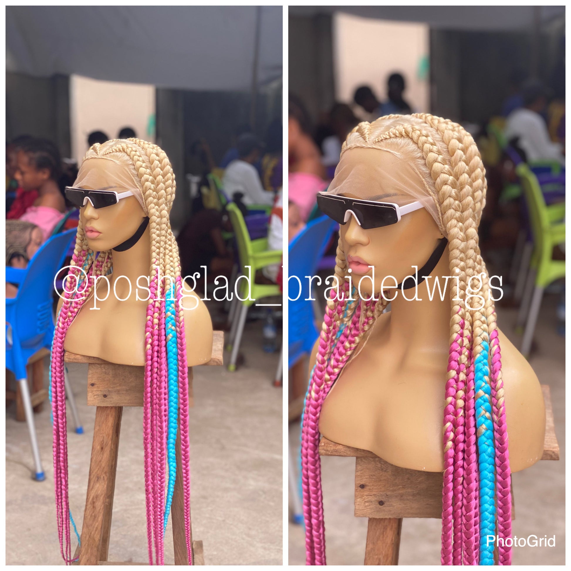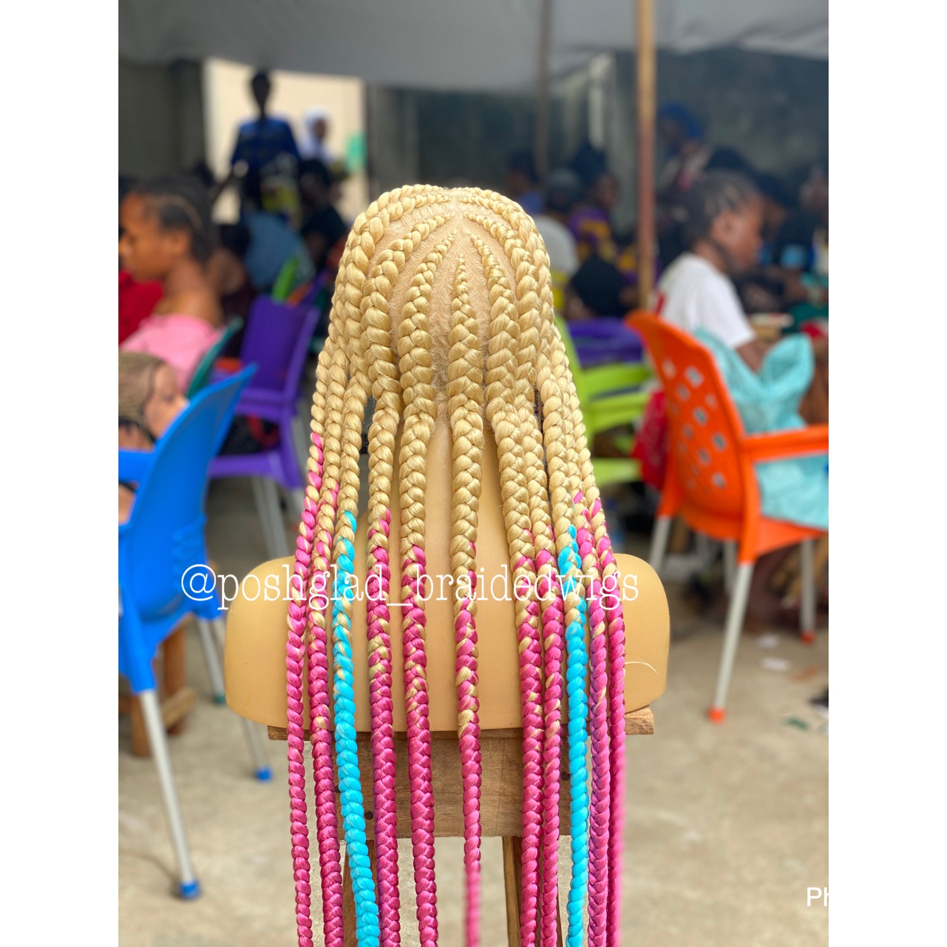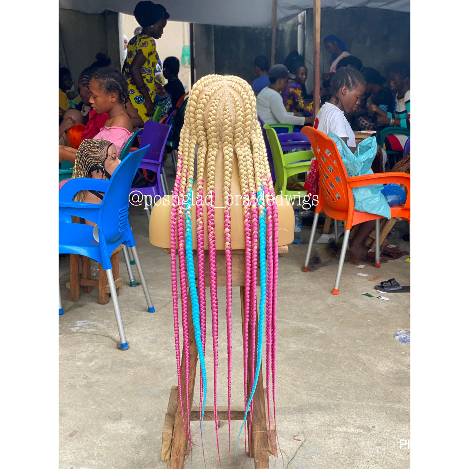 This scalp-looking glueless pop smoke wig has 100% human hair up to "8-12 in", a stretchable medium brown Swiss Full lace cap, and a fine blend of quality kanekalon fiber for extra length. It has 3-4 combs inside, an adjustable rubber band, baby hair, and a snap hook for secured installation. The hair root color is gray, the hair color is gray ombre, the length is waist length, and the weight is approximately 55-70 grams. It can last for up to 2-3 years if properly maintained. Studies show that braiding your natural hair or using harsh shampoo for an extended period causes long-term alopecia, baldness, and unbearable pain. With a poshglad braided wig, you don't have to worry about any of that. Just put your wig on and go—nobody will know it's a wig.