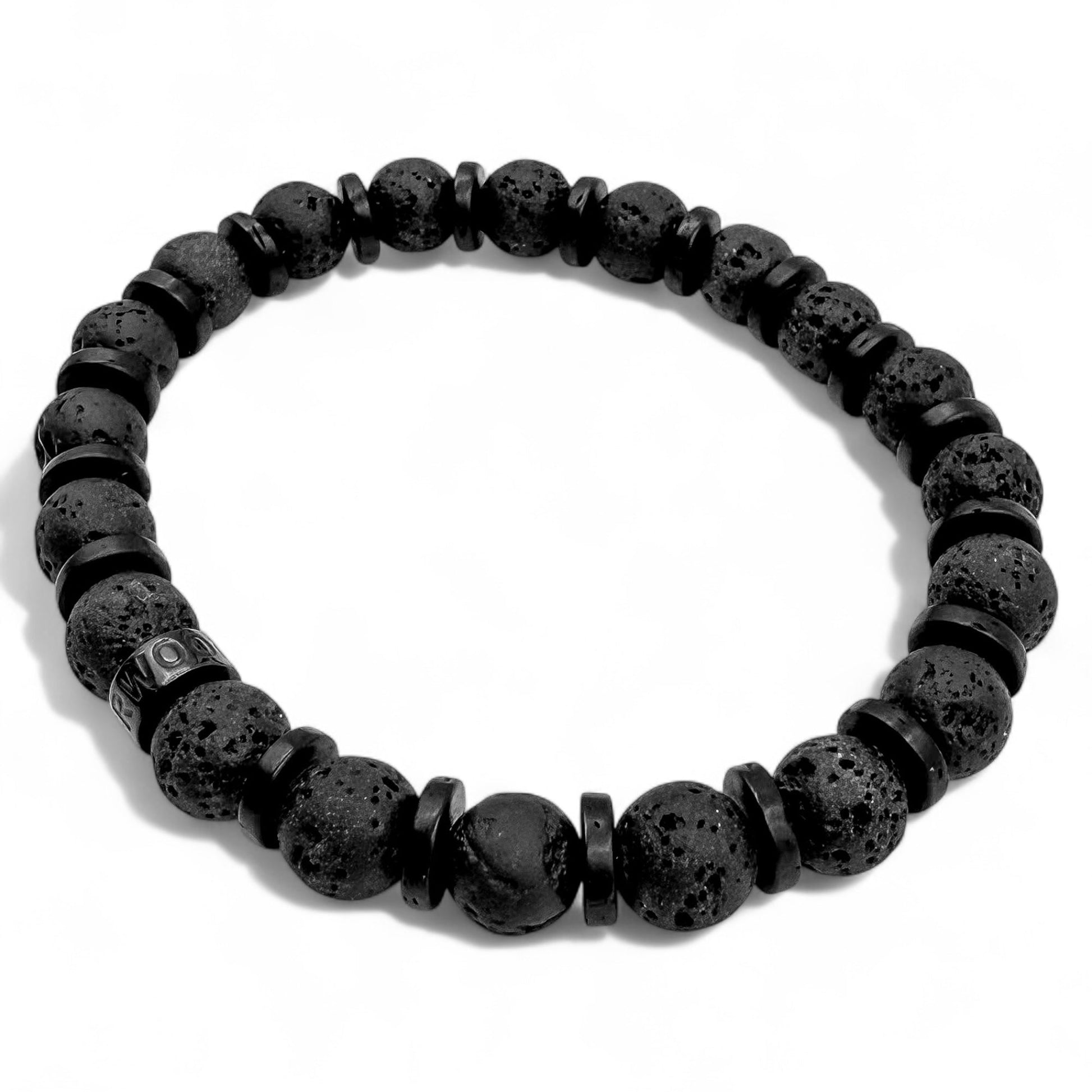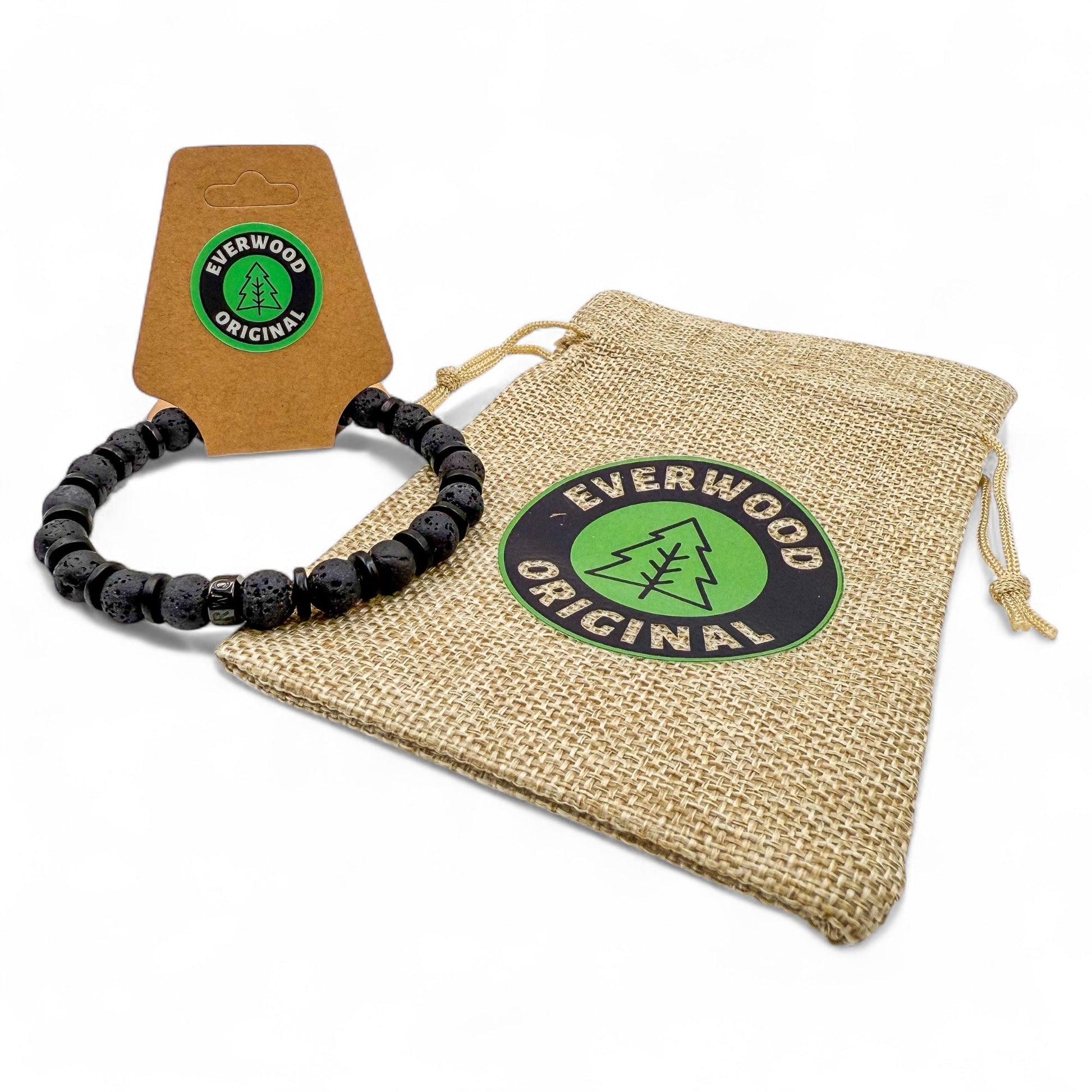 Built for those who thrive in the heat and move with quiet intensity, the Volcanic Midnight bracelet blends natural power with modern edge. Handcrafted with raw, porous lava rock beads and sleek blackwood, this bracelet delivers a bold, earthy texture that’s both rugged and refined. A black stainless steel spacer—engraved with the EVERWOOD mark—pulls it all together with a clean, tactical finish.