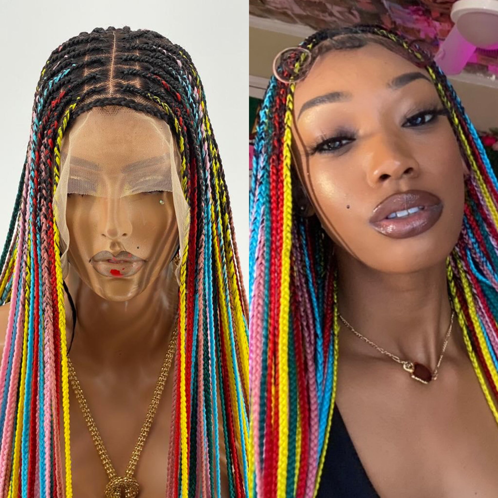 This style of Shade knotless rainbow color wig is made with a FULL LACE with baby hair. It is neatly and tightly done for a long lasting use.