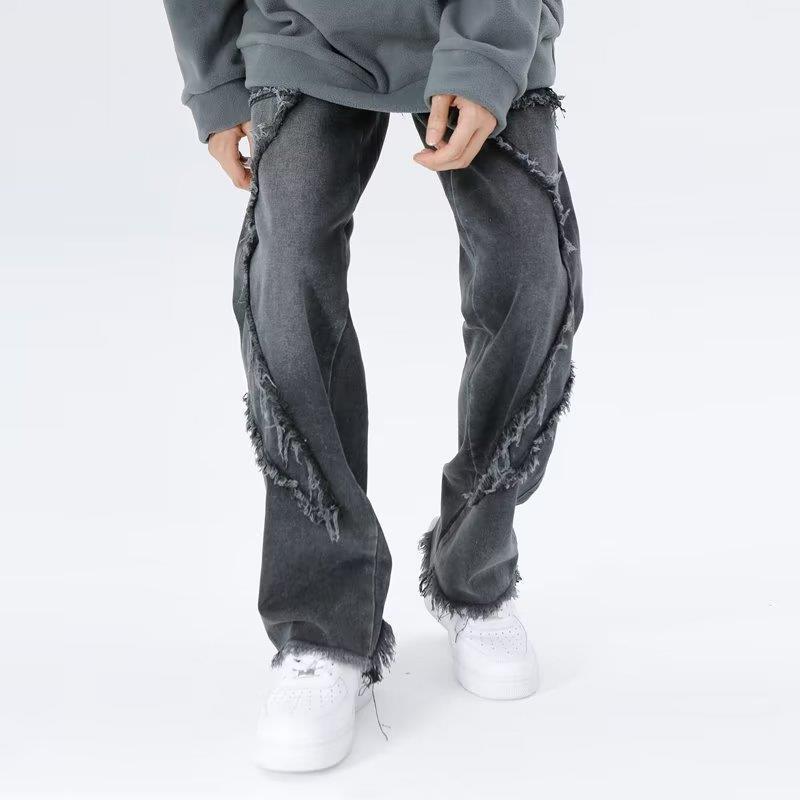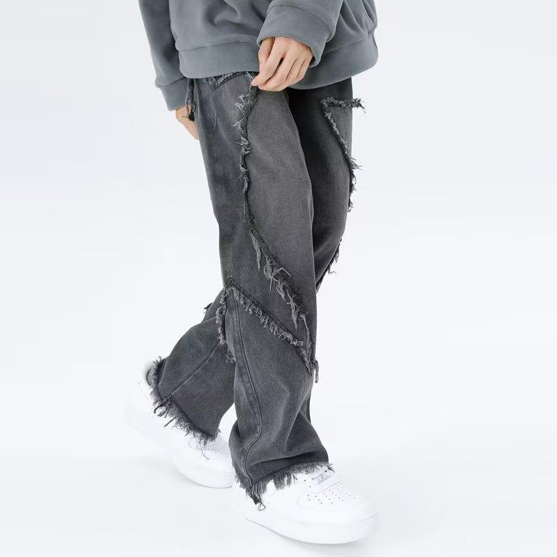 Raw Hem Jeans Men's American High Street Straight-leg Pants