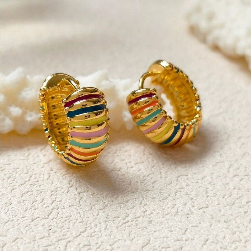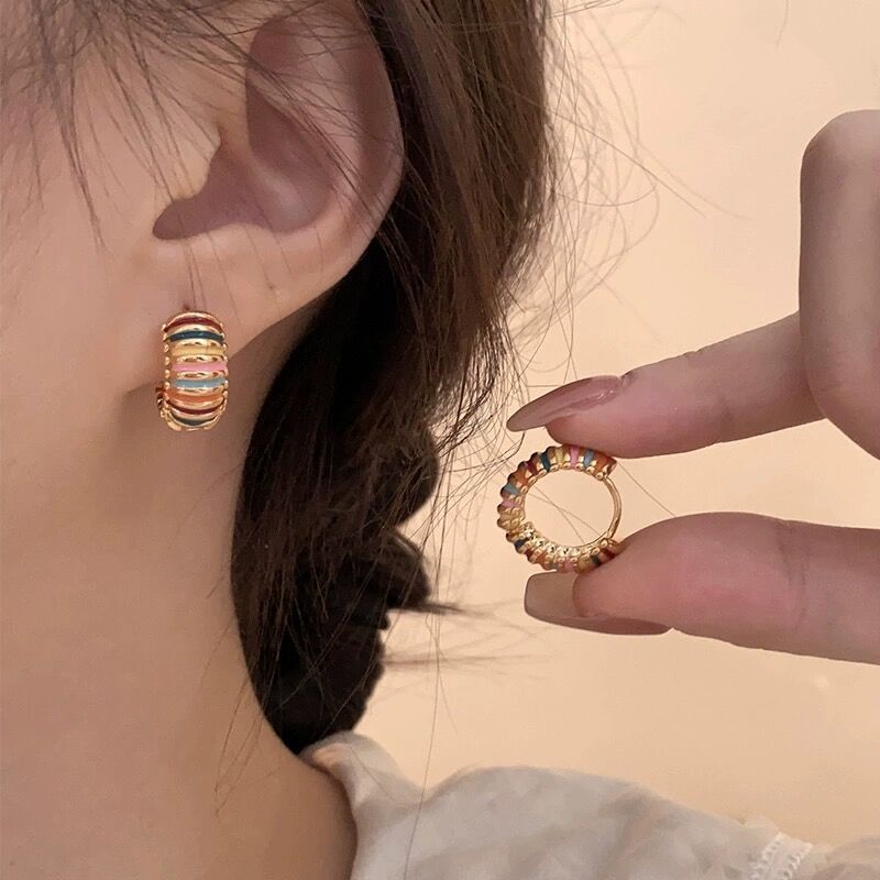 Retro Colorful Stripes Hoop Earrings Elegant Women's Light Luxury High-end Sense