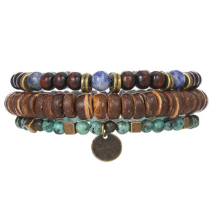 Retro Men's Coconut Wood Multi-Layer Stackable Bracelet Set