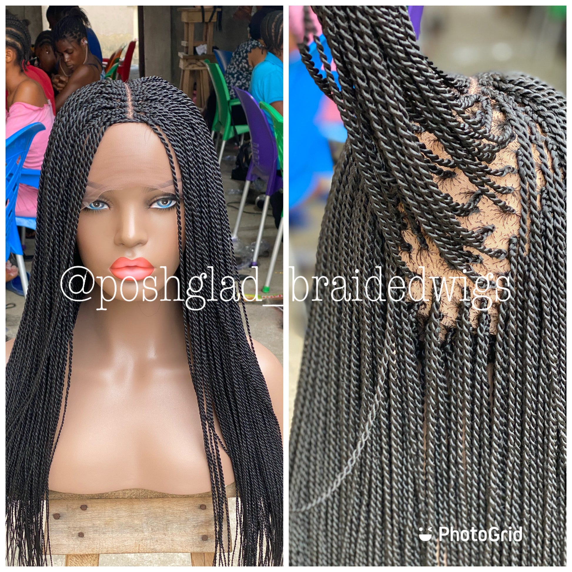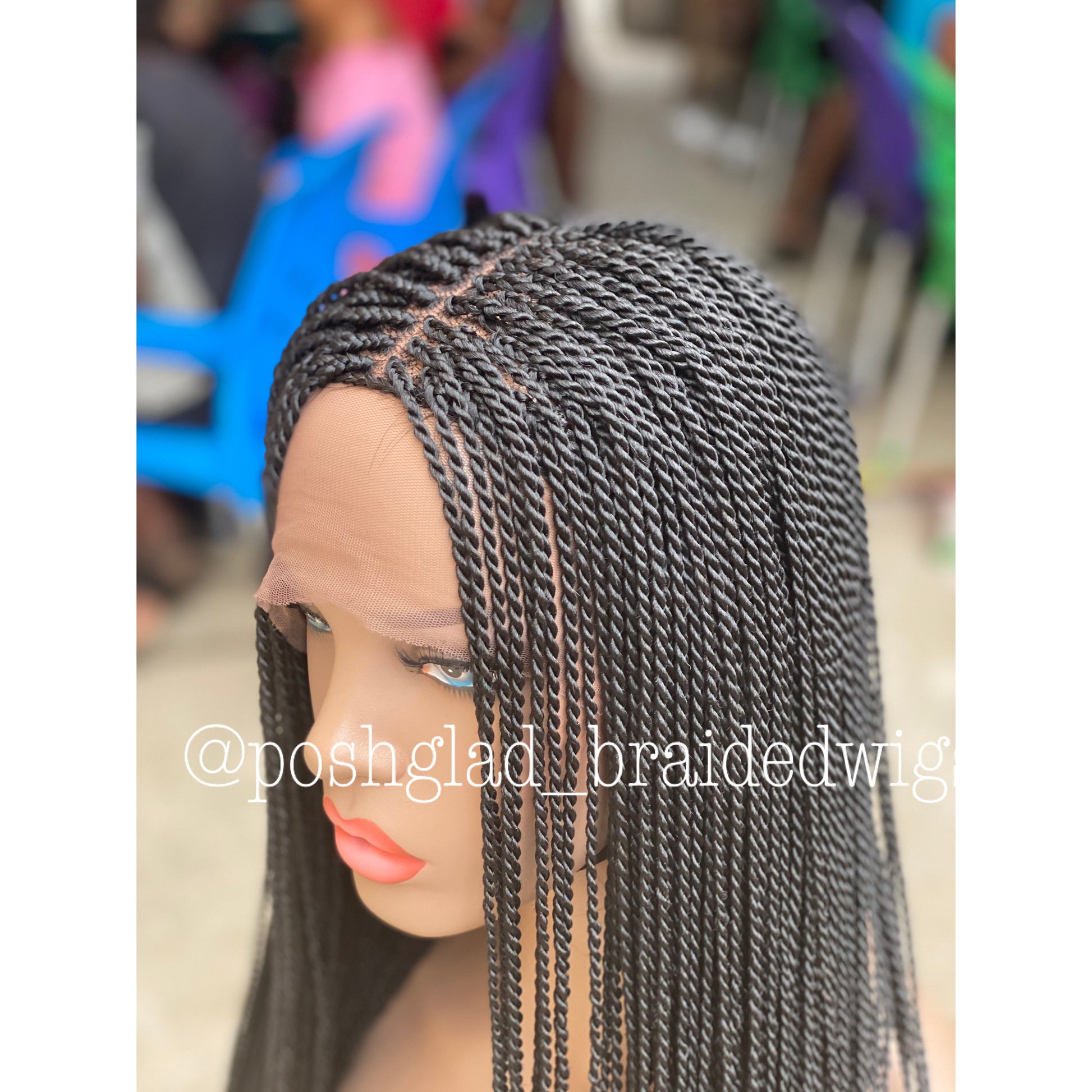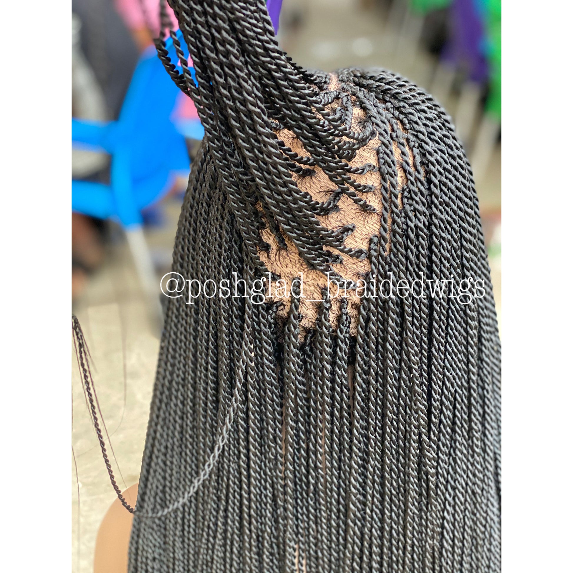 This natural looking custom handmade glueless senegalese twist braided wig name - Sadia is made with 100% human hair, Swiss full lace & the best kanekalon premium fiber for extra length. This unit and all our full lace wig come with 4 combs, an elastic band and an adjustable strap-on to hold it perfectly in place. We offer premium quality wig that look like a scalp, free shipping and 24/7 customer support. No more sitting down in a salon for 8 hours, like gurrrl no! - get your poshglad braided wig, wear it and go. Study shows that braiding on your natural hair causes long term alopecia, receding hairline, baldness and long term hair cancer. With our wigs you don't have to worry about losing your natural hair.