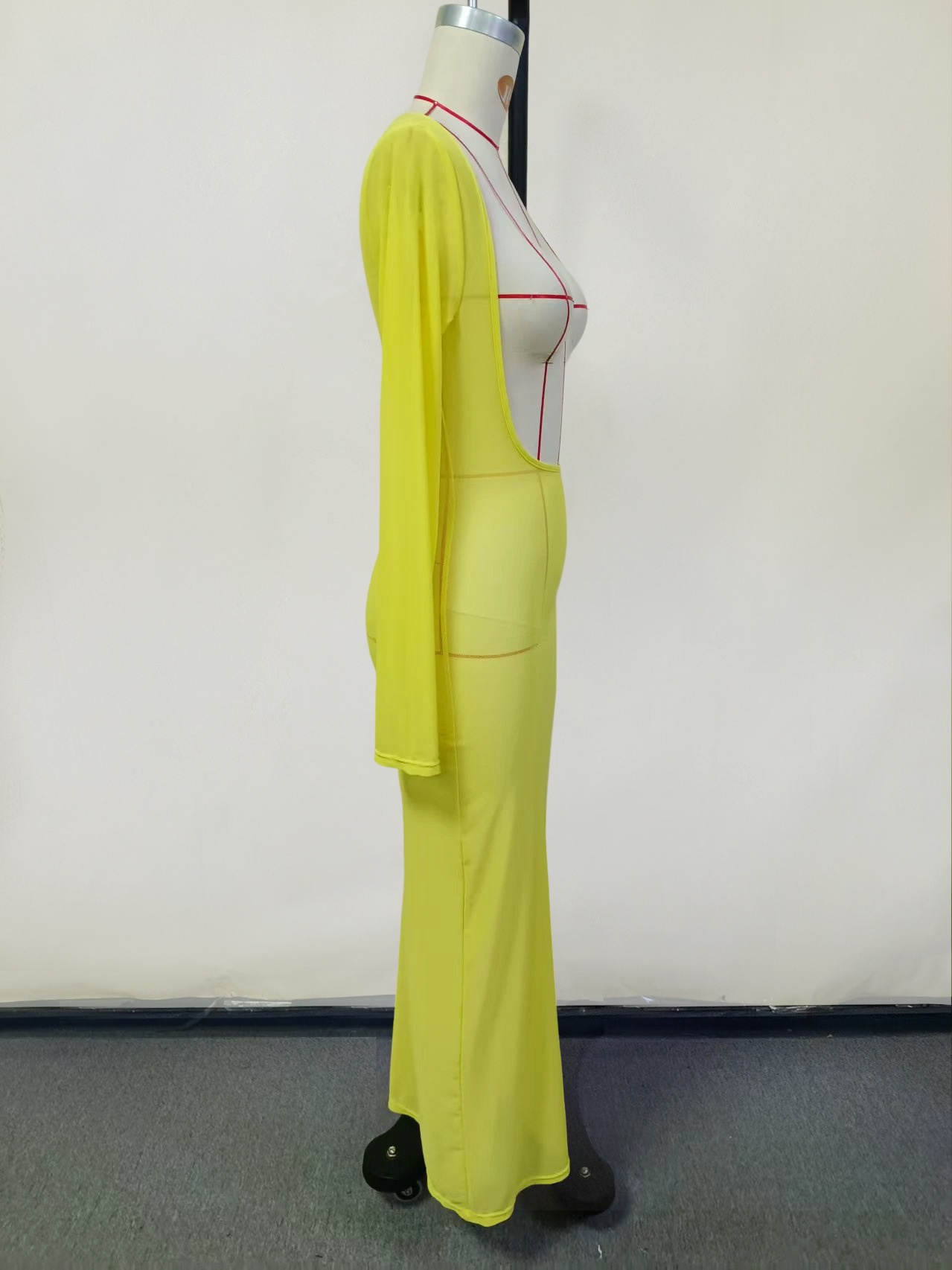 Sexy See-through Temptation Midriff Outfit Bandeau Slim-fit Long Sleeve Tight Dress