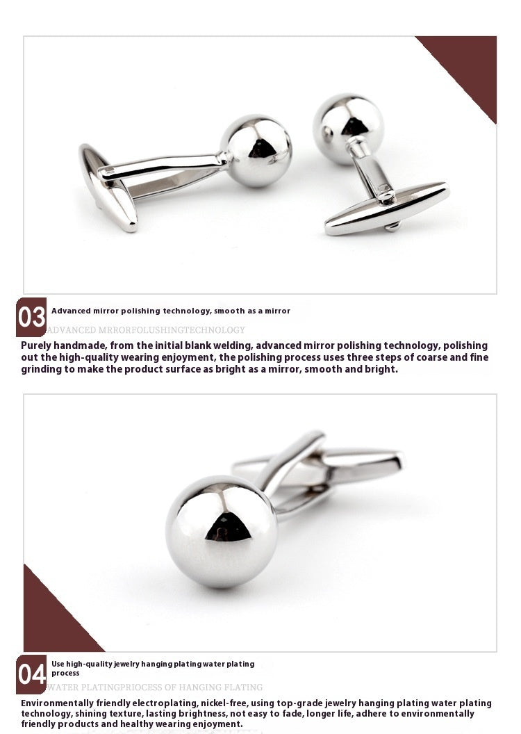 Silver Steel Ball Shape Metal Cufflinks For Men