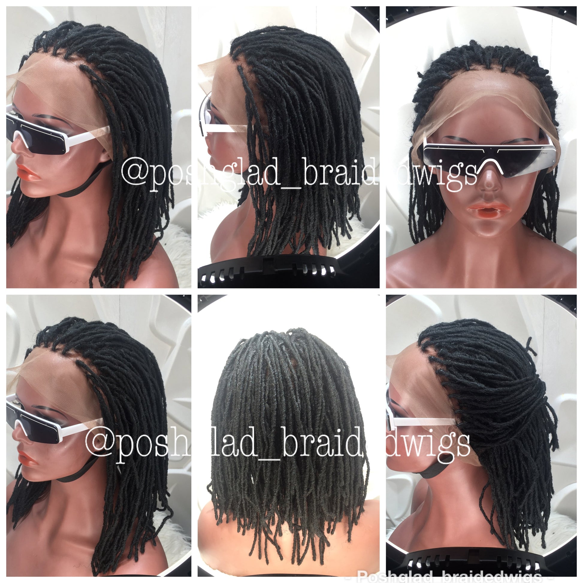 This style of Karina Faux locs wig is made with a 100% full lace base wig with baby hair. It has 4 combs, a black rubber band, and a snap hook. It is neatly and tightly done for long-lasting use. No more sitting down for 12 hours in a salon, like gurrrl No. Get your wig on and go. A study shows that braiding on your natural hair causes long-term alopecia, unbearable pain, and an Ostrich neck after sitting down for 12 hours lol. With a poshglad braided wig, just put your wig on and go; there is no time to waste.