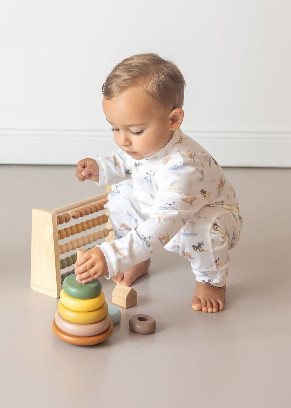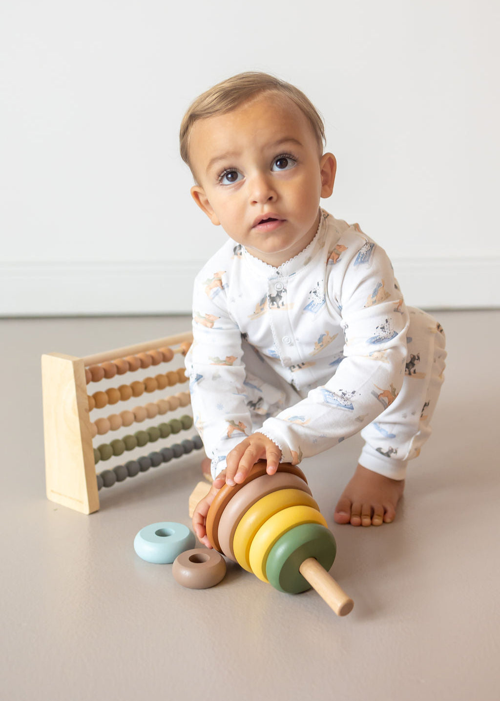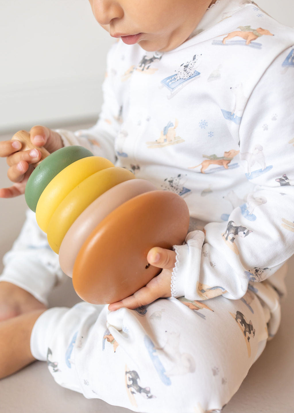 These adorable baby sleep and play feature a lively print of playful puppies hitting the slopes—bringing snowy fun and cozy vibes to your little one’s bedtime routine.Crafted from ultra-soft Pima Cotton with snaps closure this delicate essential is perfect for both snuggly naps and stylish outings. Cozy, breathable, and stretchy—perfect for bedtime snuggles, playful evenings, and busy little mornings in the wild.